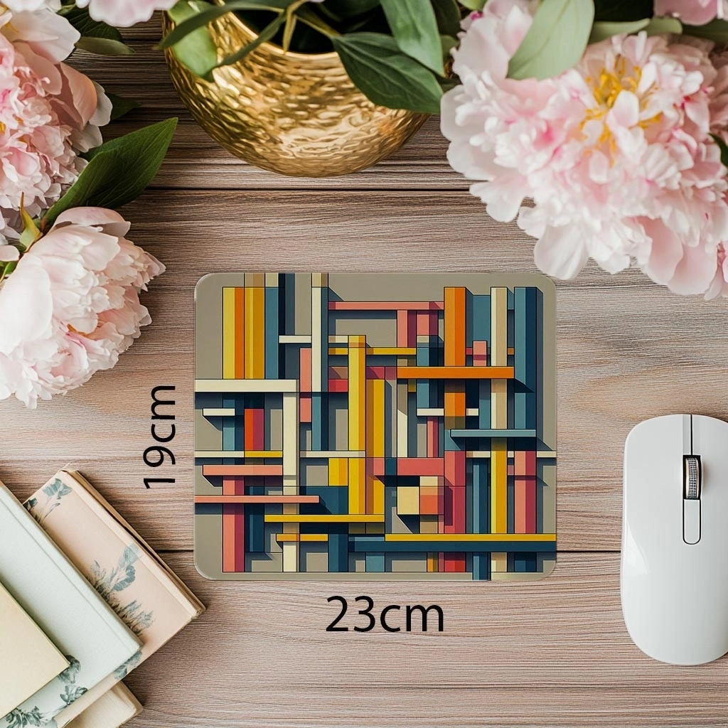 Kırmızı, mavi ve sarı gibi birincil renklerle hazırlanmış çizgisel geometrik tasarımıyla bu mousepad, enerjik ve dikkat çekici bir görünüm sunar. Modern sanat dokunuşları taşıyan bu ürün, yaratıcı masaüstleri için güçlü bir stil öğesidir.
