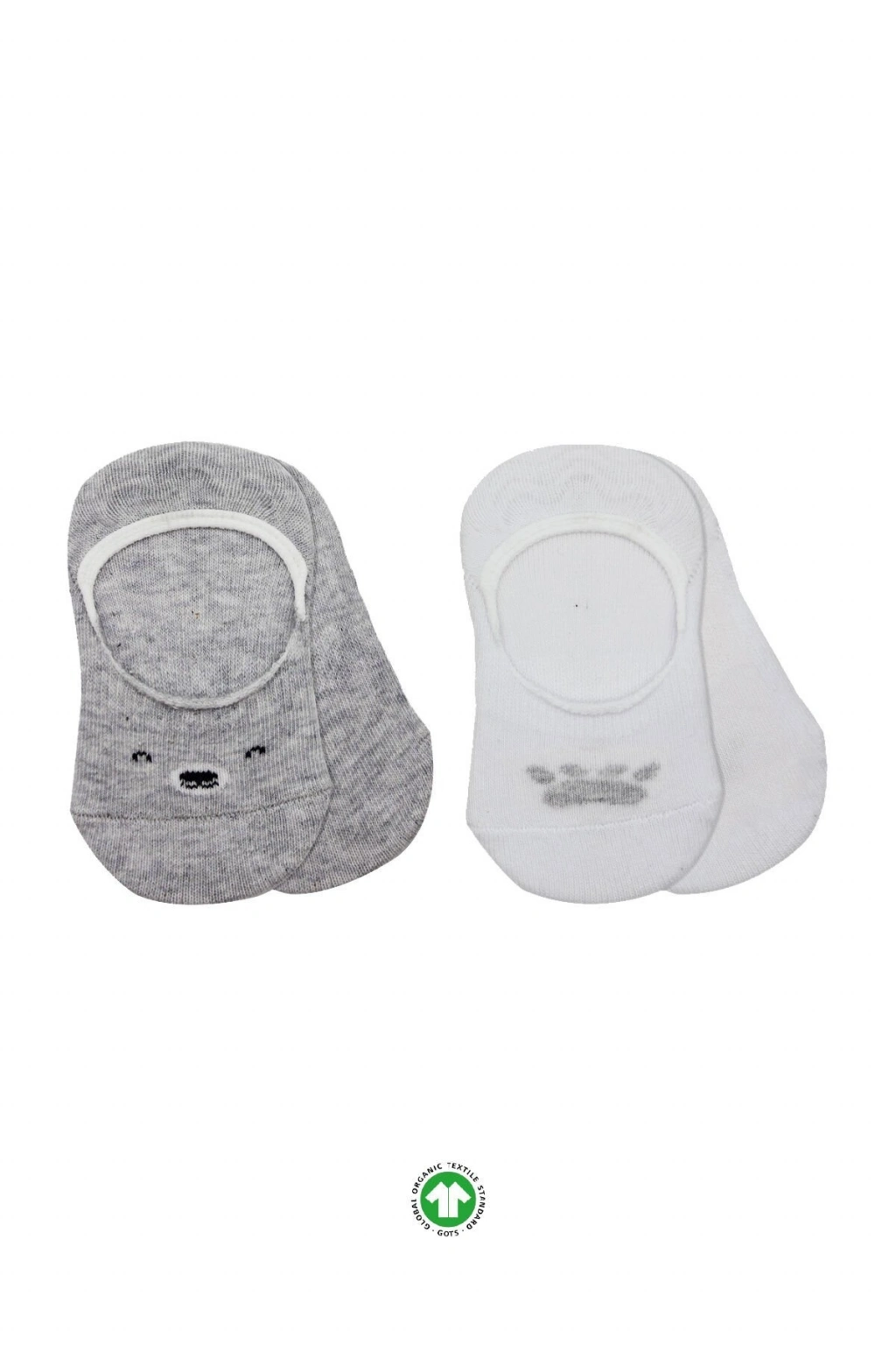 Bistyle 2'Li Babet Cute Face Penye Çorap 30103 Gri Beyaz