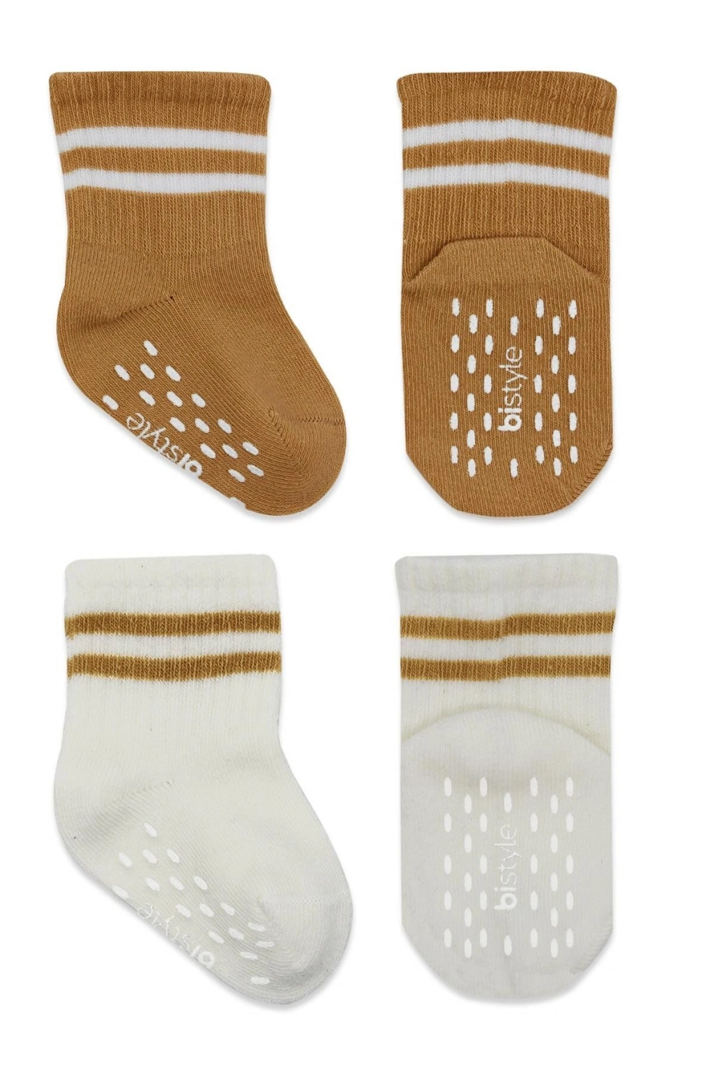 Bistyle Çemberli Kaymaz Soket Çorap 2'Li BS10125 Ekru Hardal