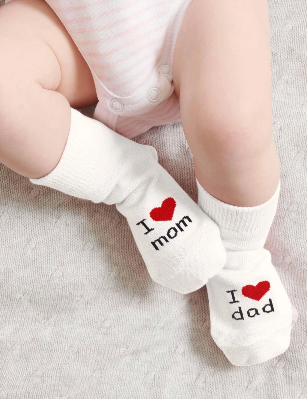 Bistil Bistyle Organik Kız Erkek Bebek Dikişsiz Basic 3lü Mom Dad Desen & Mama Papa Desen Soket Çorap Kokulu Pamuklu Yumuşak Antialerjik