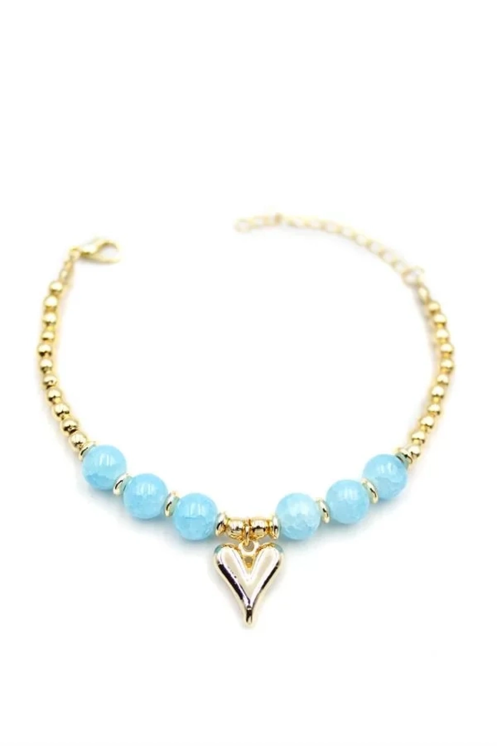 Boncuklu Kalp Bileklik - Mavi