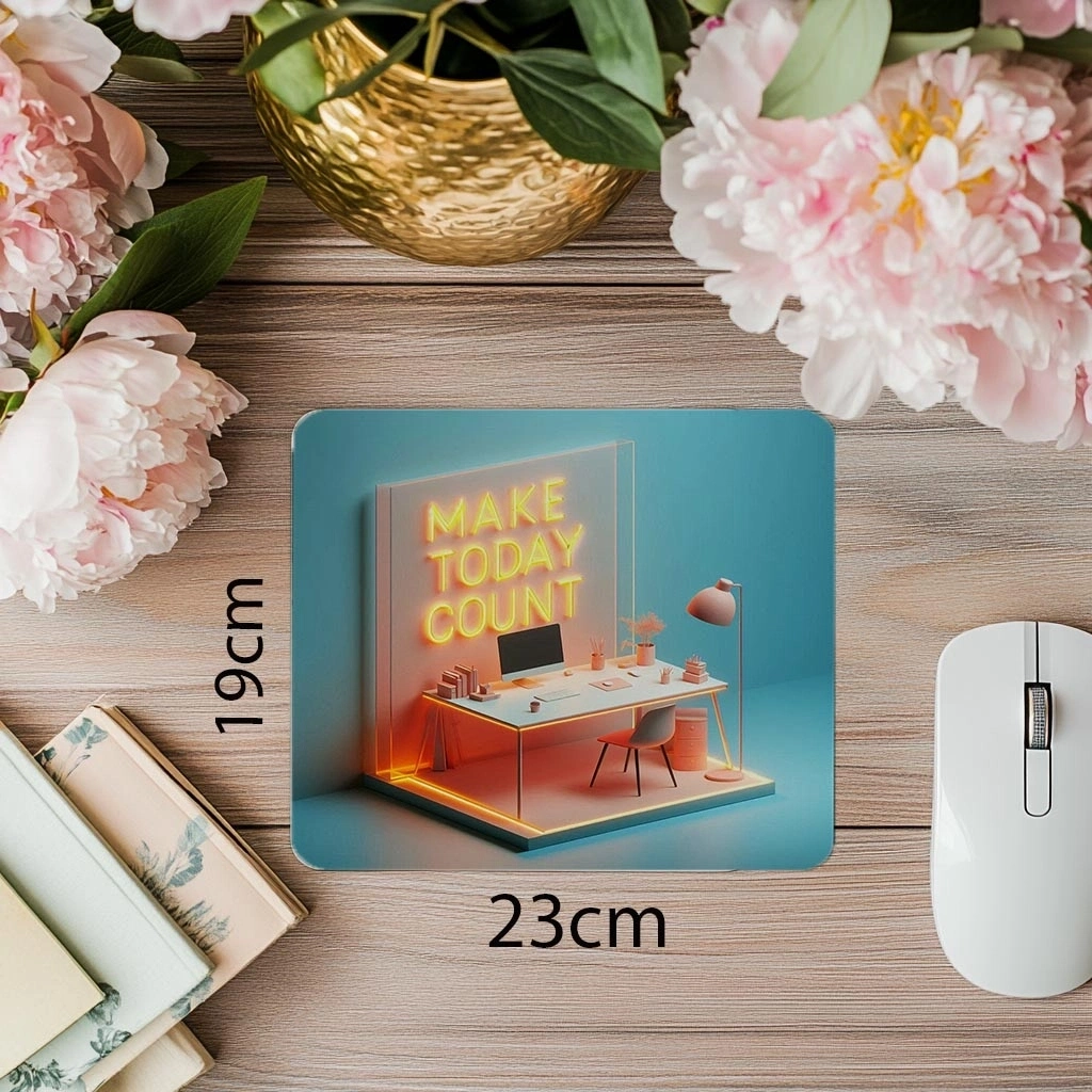 Bugünü değerlendir sloganlı motivasyon mouse pad, ilham verici tasarımı, pürüzsüz kaydırma yüzeyi ve kaymaz tabanıyla enerjik ve konforlu bir deneyim sunar.