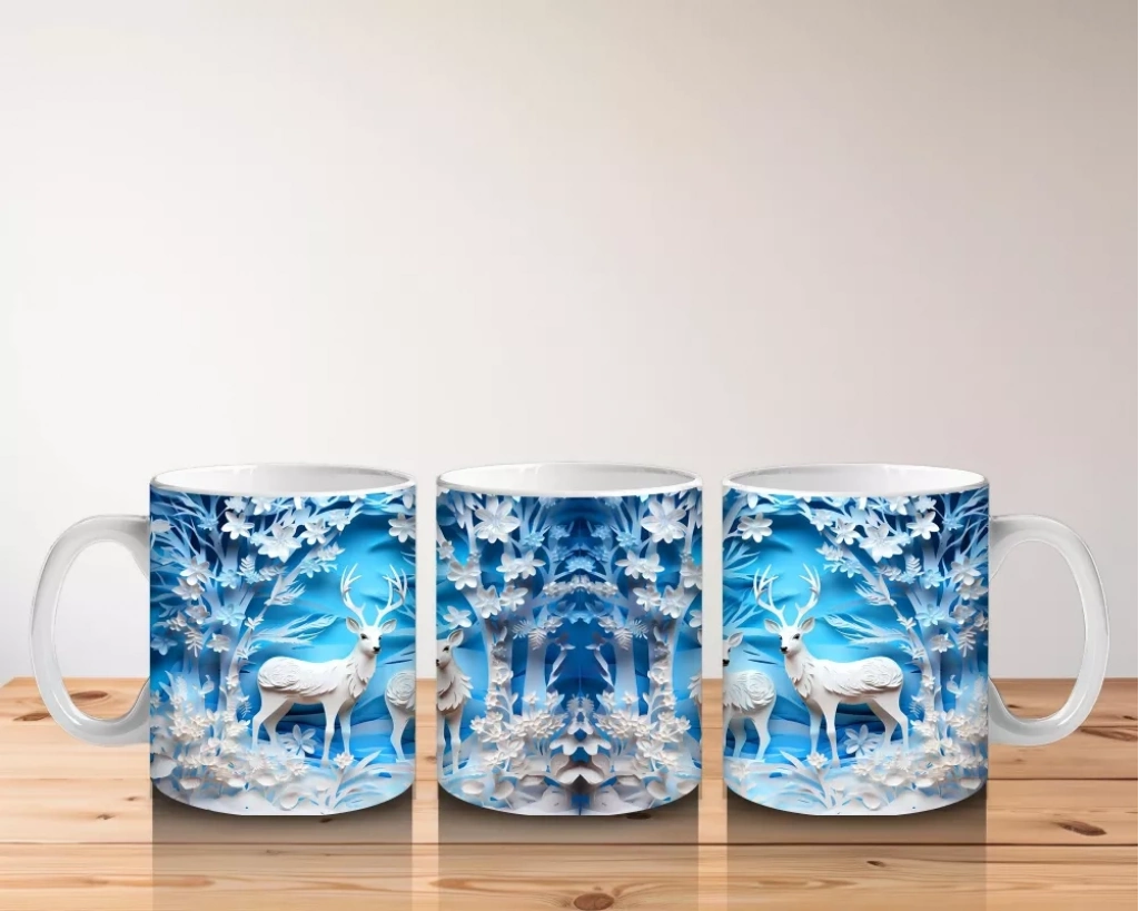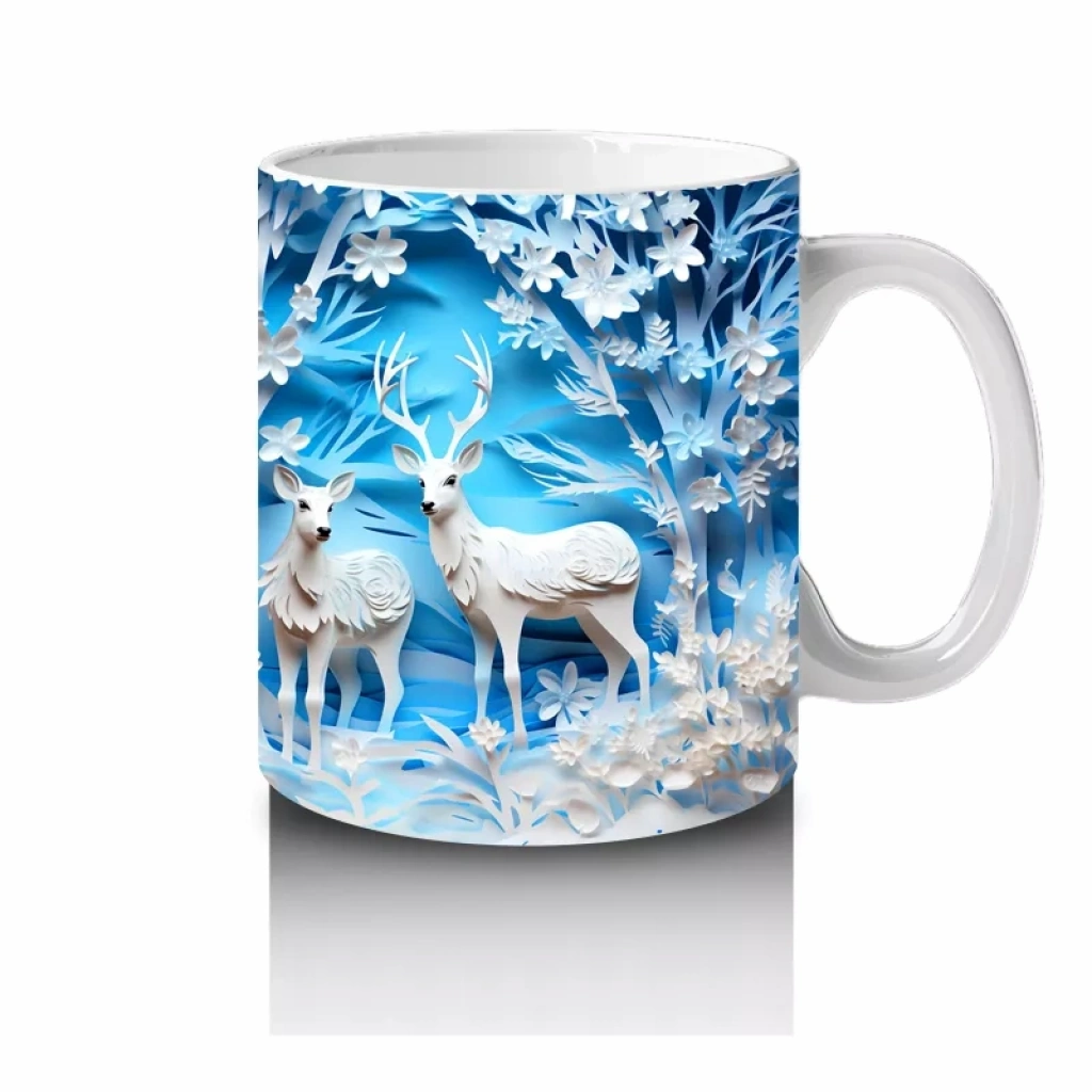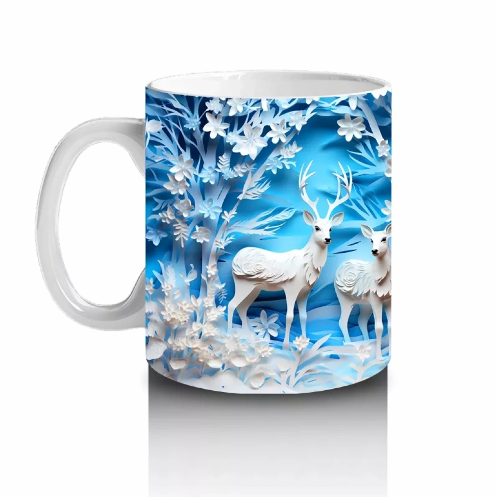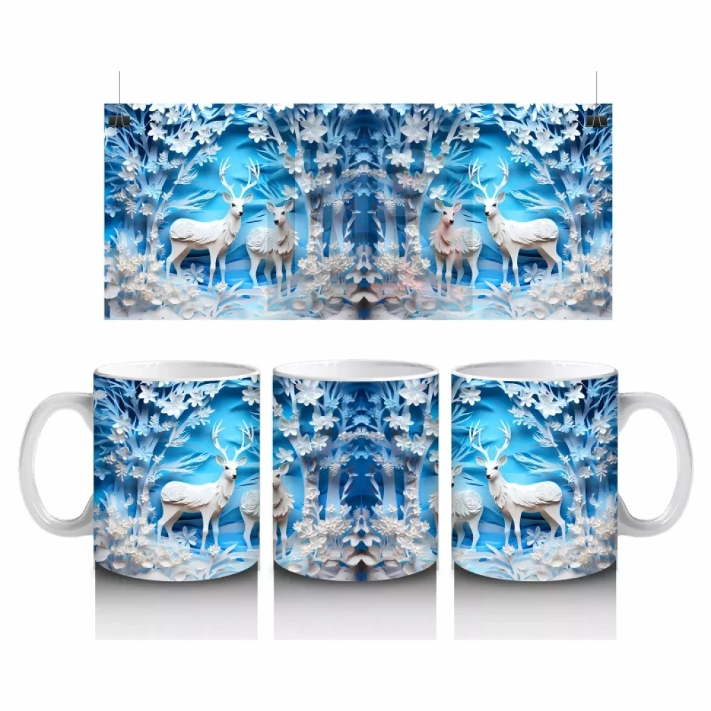 Buz Geyikleri Kristal Arka Planla – Baskılı Kupa