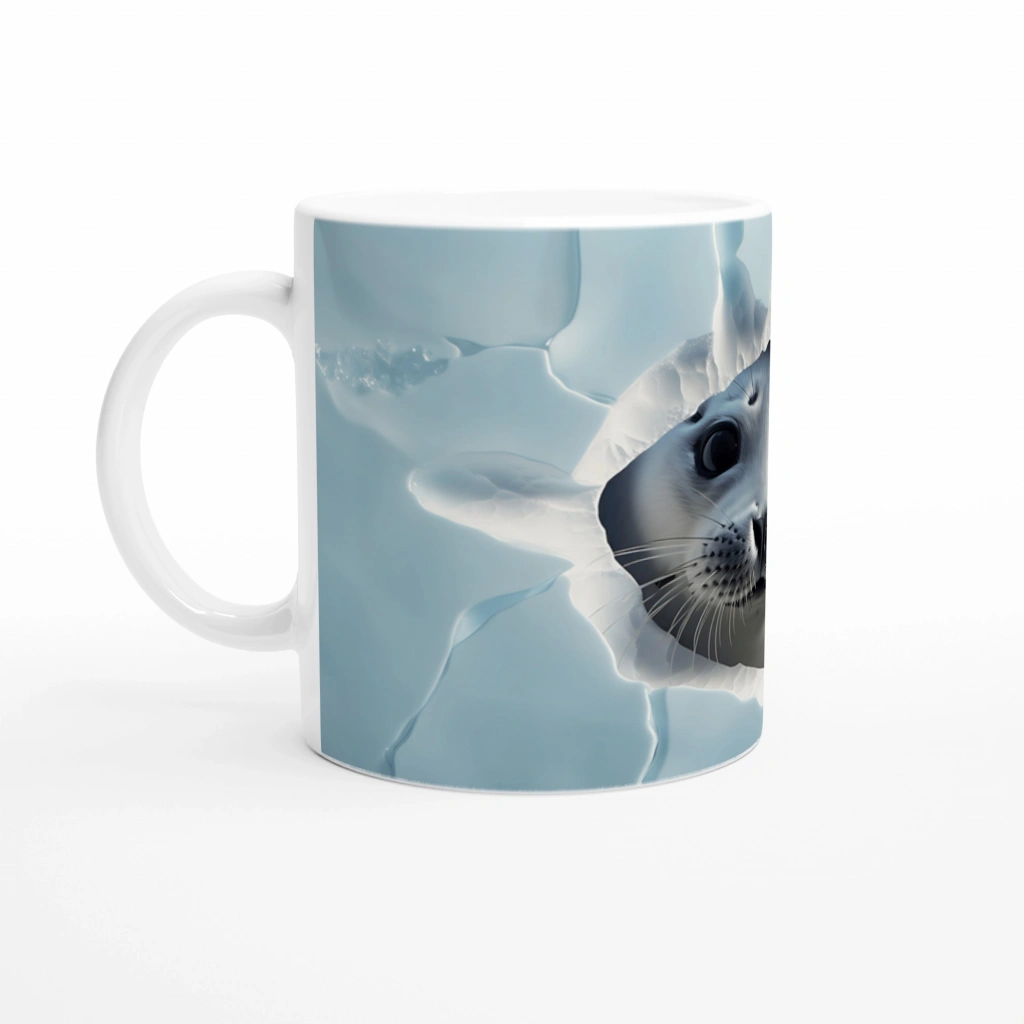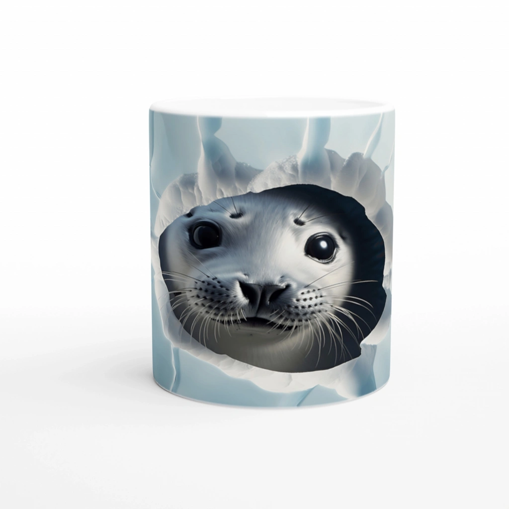 Buzlu Zeminden Bakan Sevimli Fok Yavrusu Baskılı Kupa Bardak, kış temalı sade renkleri ve sıcak ifadesiyle kahve molalarınıza tatlı bir kontrast katıyor. Kış severler ve hayvan dostları için ideal bir tercih.