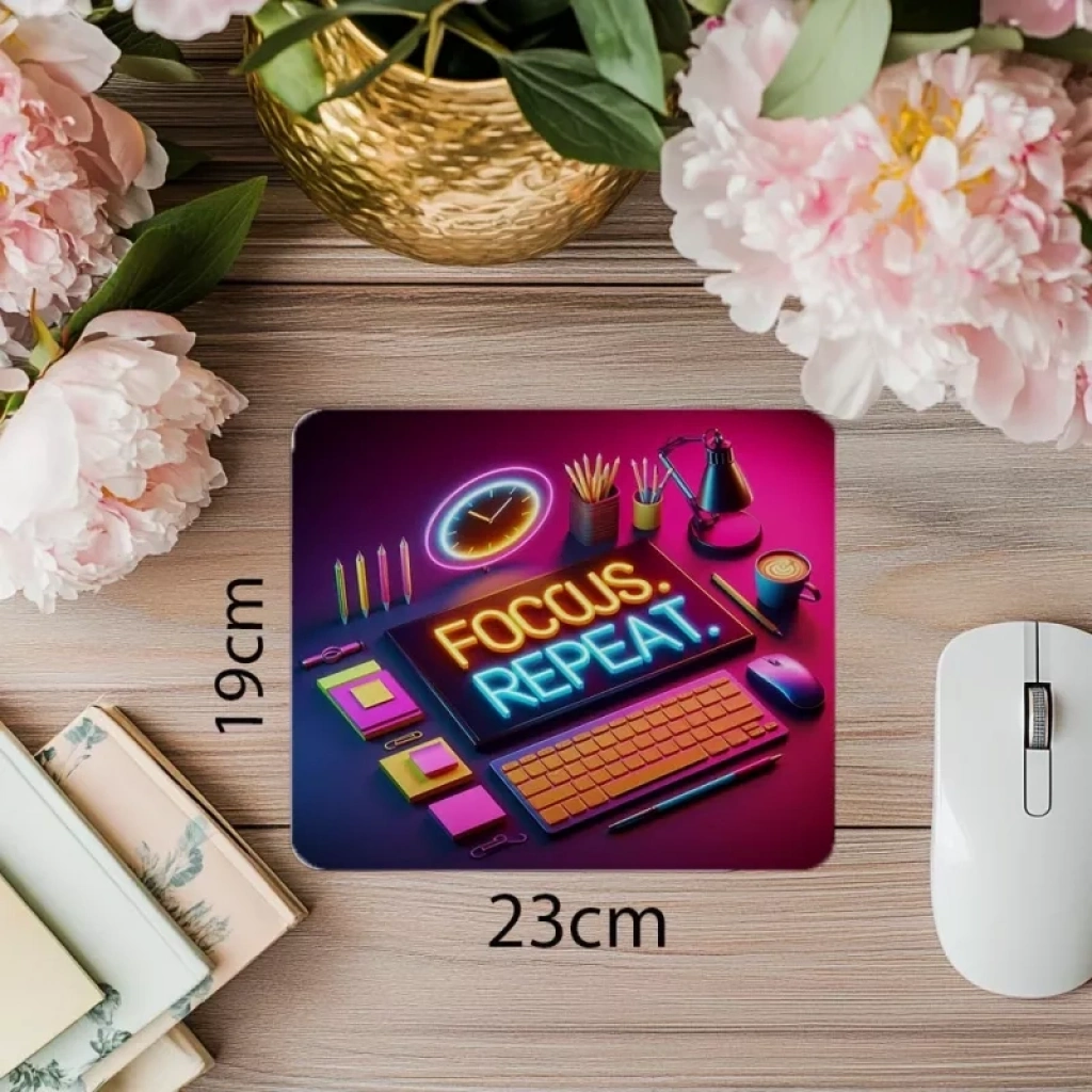 Canlı renkli 3D motivasyon mousepad – “Focus” yazılı: üç boyutlu efektler ve dinamik renk paletiyle odaklanmayı destekler; kaymaz taban ve uzun ömürlü yüzey sağlar.