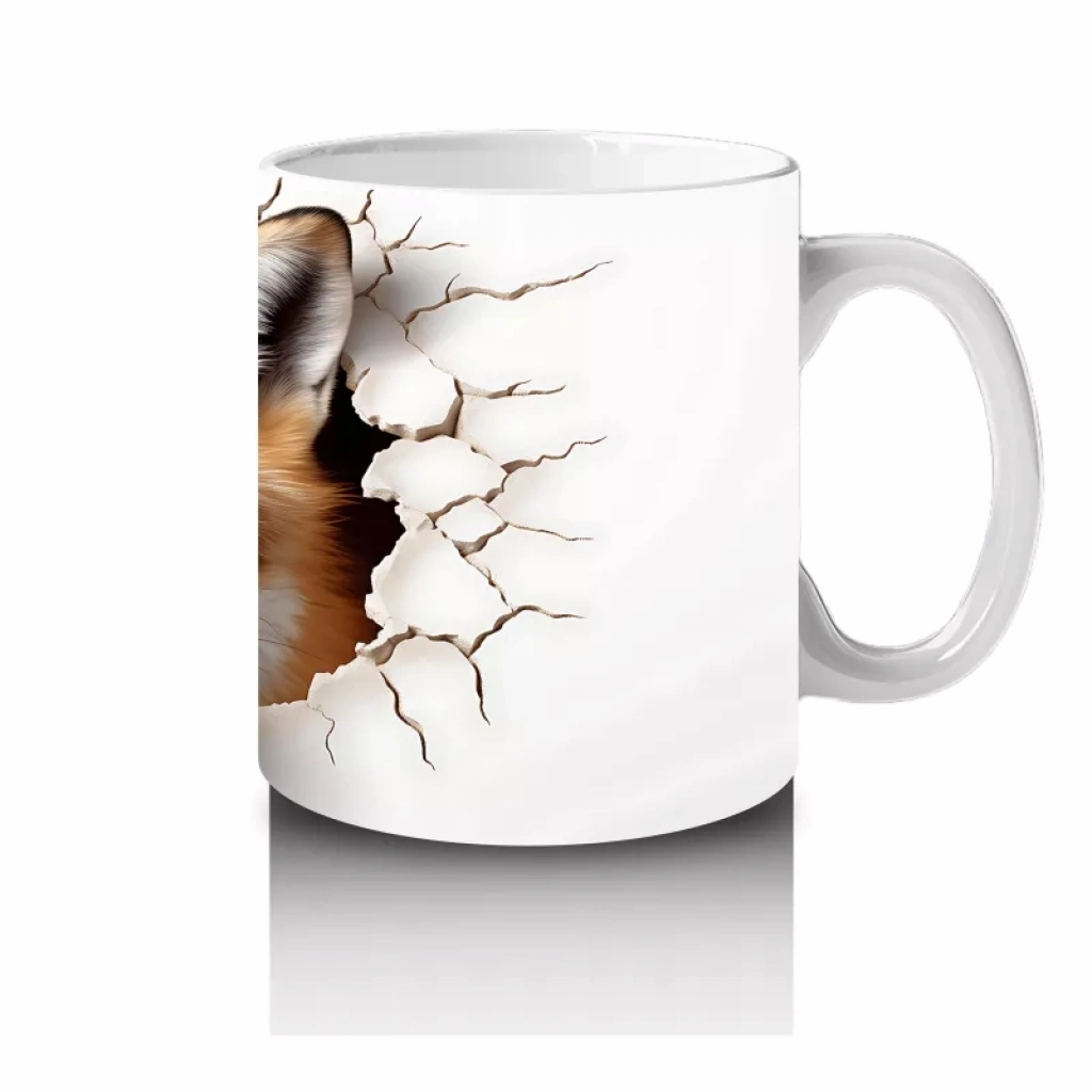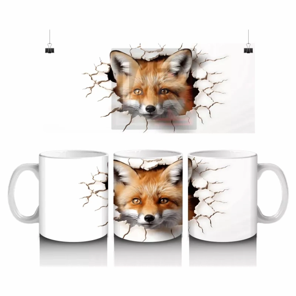 Çatlak zemin arasından dikkatle bakan kızıl tilki, zarif ve yabanî havasıyla dikkat çekiyor. Doğa temalı, asil ve estetik bir kupa tasarımı arayanlara özel.