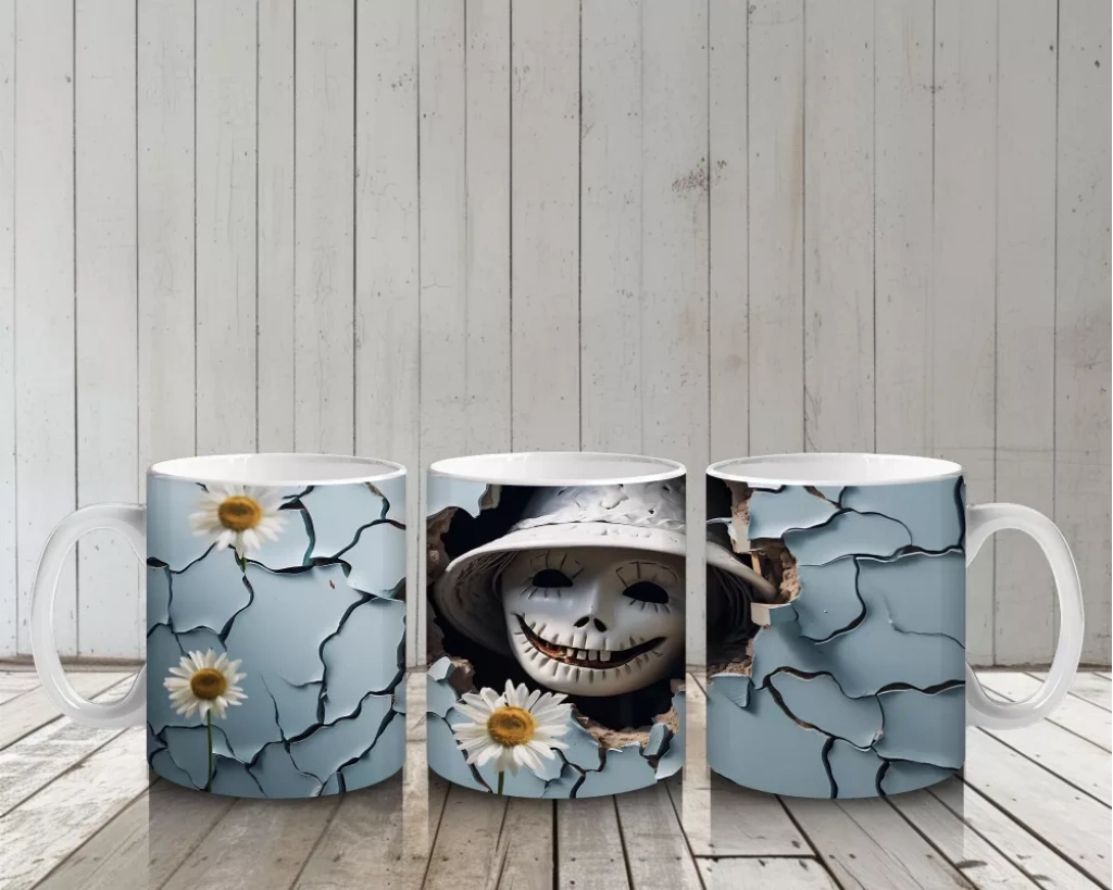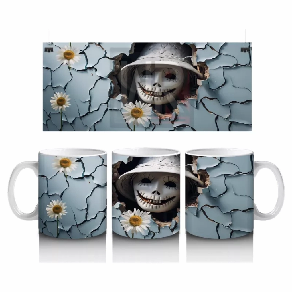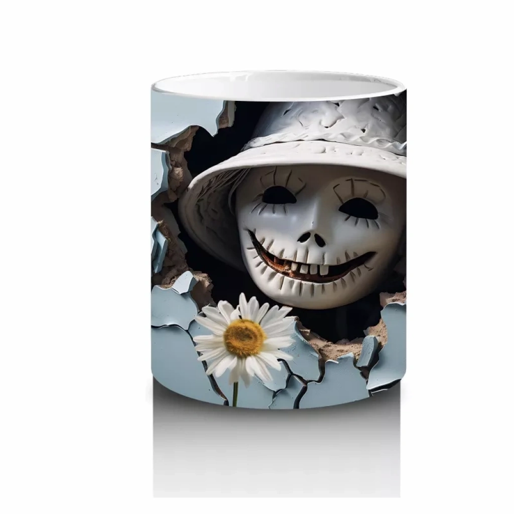 Çatlak Duvar Arasında Meraklı Gözler – Hediyelik Kahve Kupası Kırık duvar aralığından dışarı bakan meraklı göz figürü, bu Cadılar Bayramı baskılı kupaya gizemli ve eğlenceli bir hava katıyor. Farklı tasarımlar arayanlara özel hediyelik kahve kupasıdır.