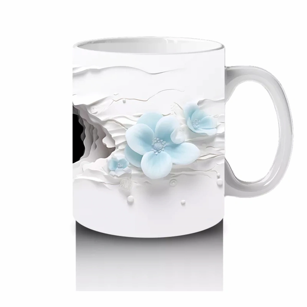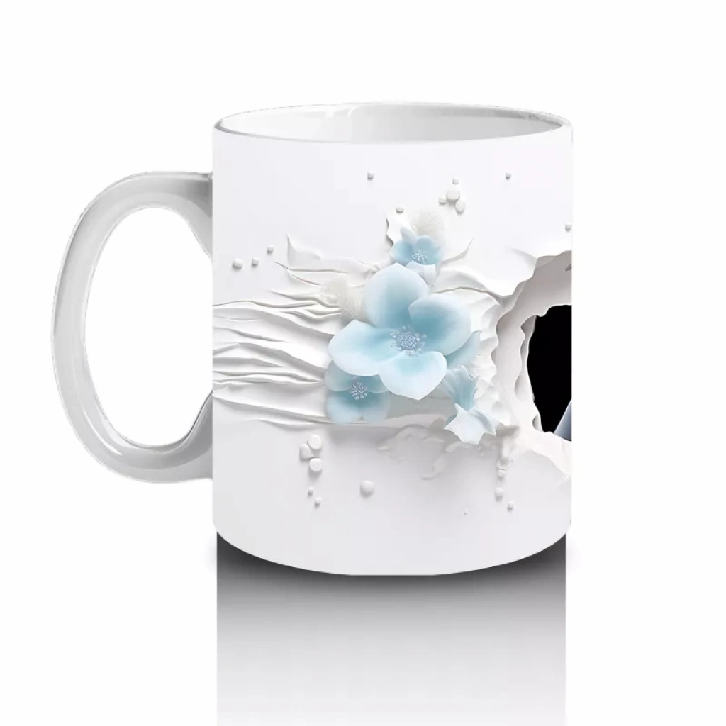 Çatlak duvarın içinden enerjik bir şekilde çıkan yunus figürü, sürprizli ve neşeli bir sahne yaratıyor. Deniz temasını sevenler için hem eğlenceli hem dinamik bir kupa tasarımı.