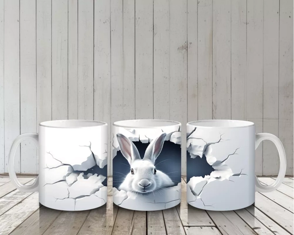 Çatlak Duvar Arasından Bakan Tavşan – Baskılı Kahve Kupası