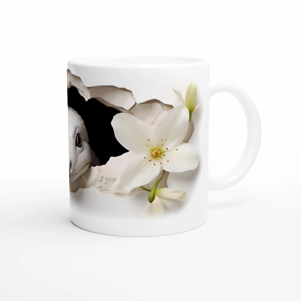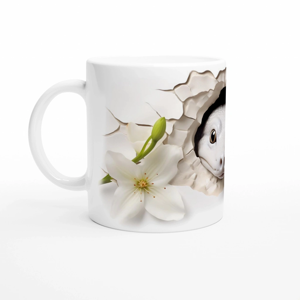 Çatlak Duvardan Bakan Albino Kertenkele Temalı Baskılı Kupa Bardak, sıra dışı hayvan severler için özel olarak hazırlandı. Beyaz çiçekler arasından çıkan meraklı kertenkele figürü, sadelikle egzotik havayı bir arada taşıyor.