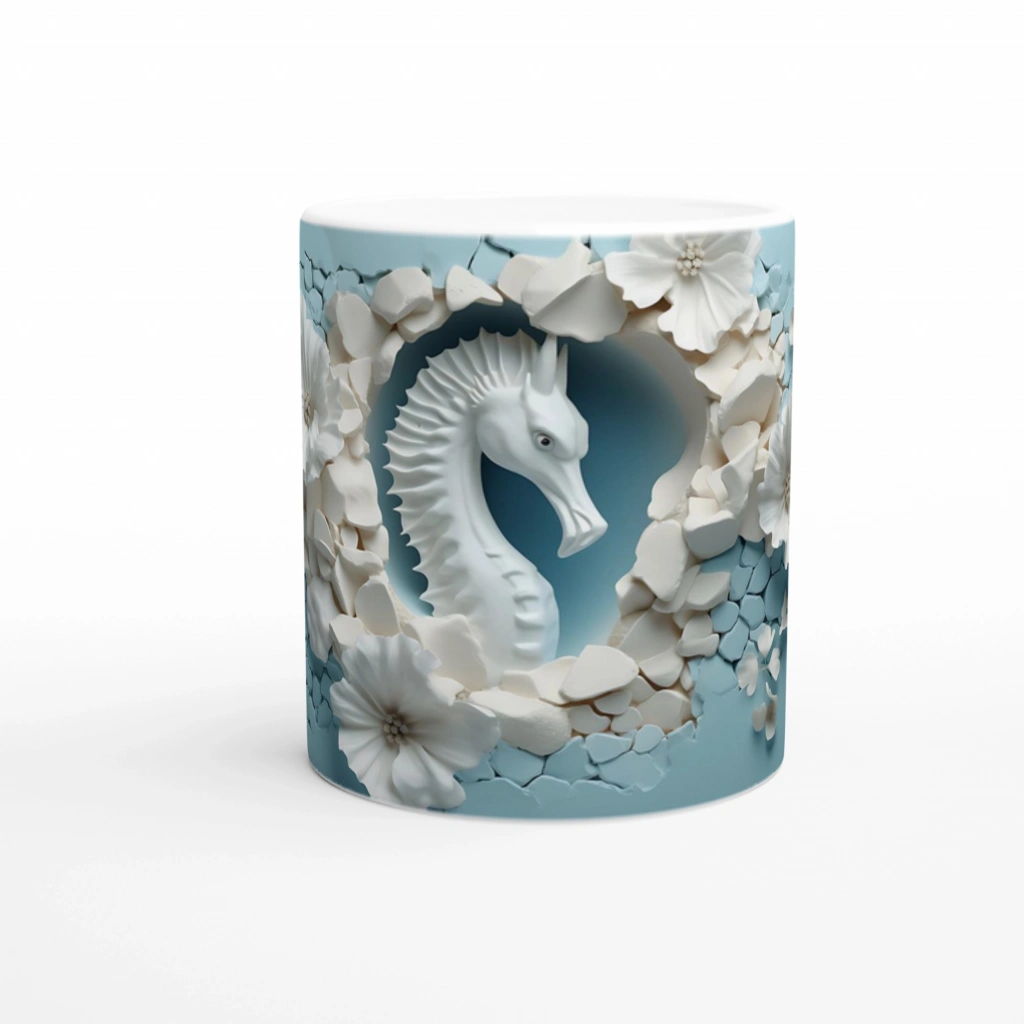 Çatlak Duvardan Bakan Denizatı Temalı Baskılı Kupa Bardak, mavi tonlarda çatlak zemin efekti ve beyaz çiçeklerle çevrelenmiş asil denizatı figürüyle dikkat çekiyor. Sakinliği ve deniz altı estetiğini yansıtan bu özel tasarım, her yudumu bir yolculuğa dönüştürür.