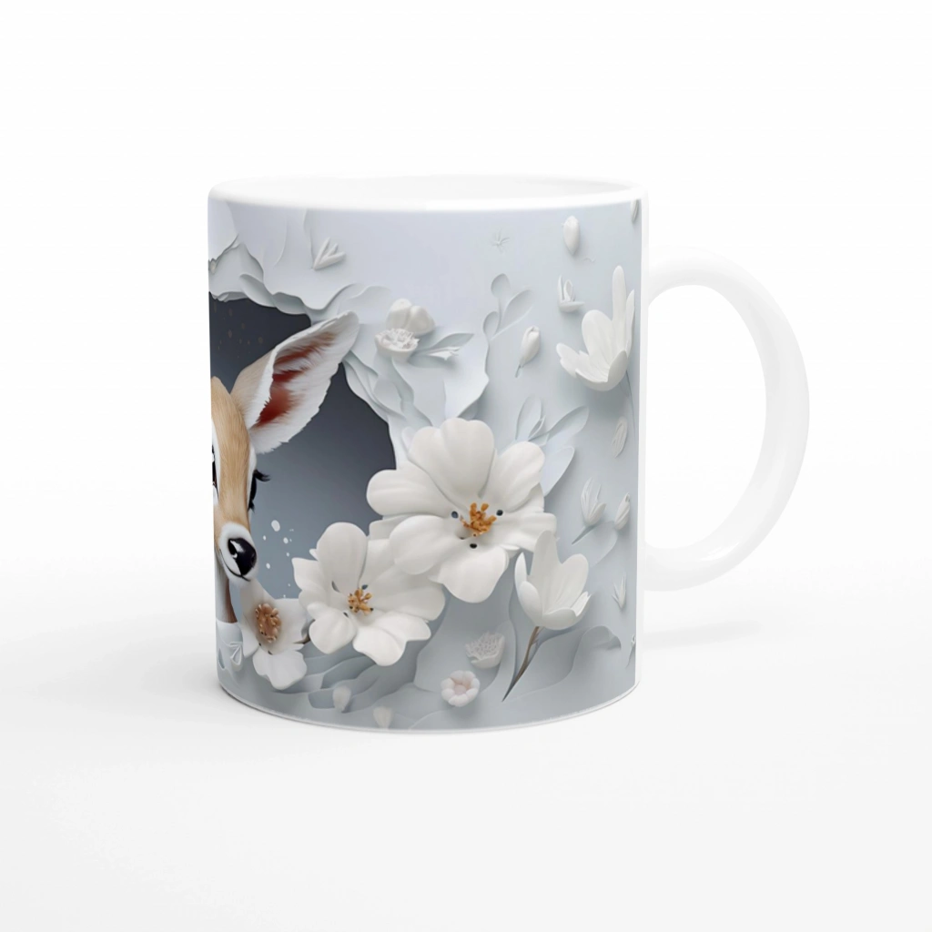 Çatlak Duvardan Bakan Sevimli Geyik Temalı Baskılı Kupa Bardak, beyaz çiçek detayları ve yumuşak çizimleriyle sakinlik arayanlar için mükemmel bir tercih sunar. Geyik figürünün naifliği, her yuduma dingin bir mutluluk katıyor.