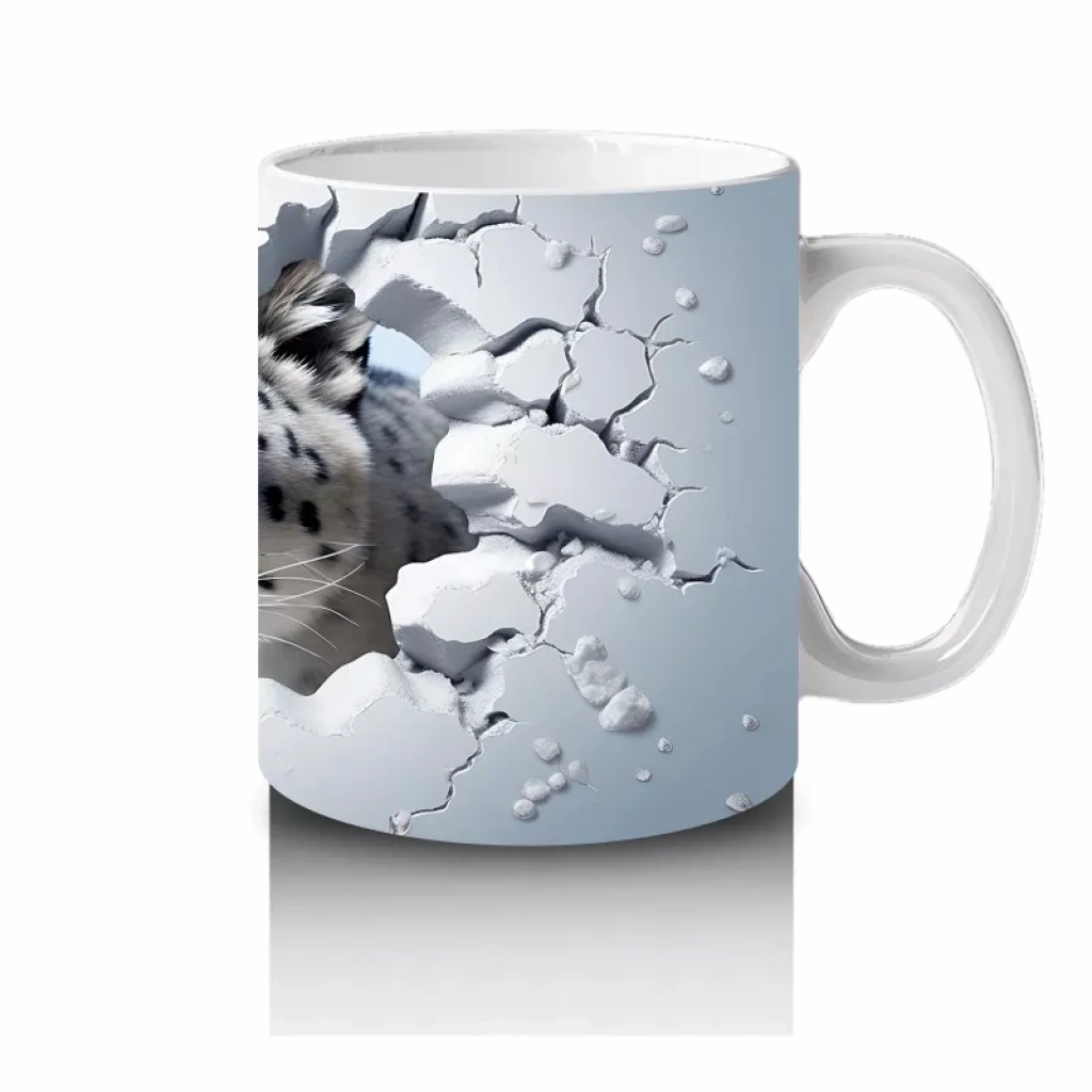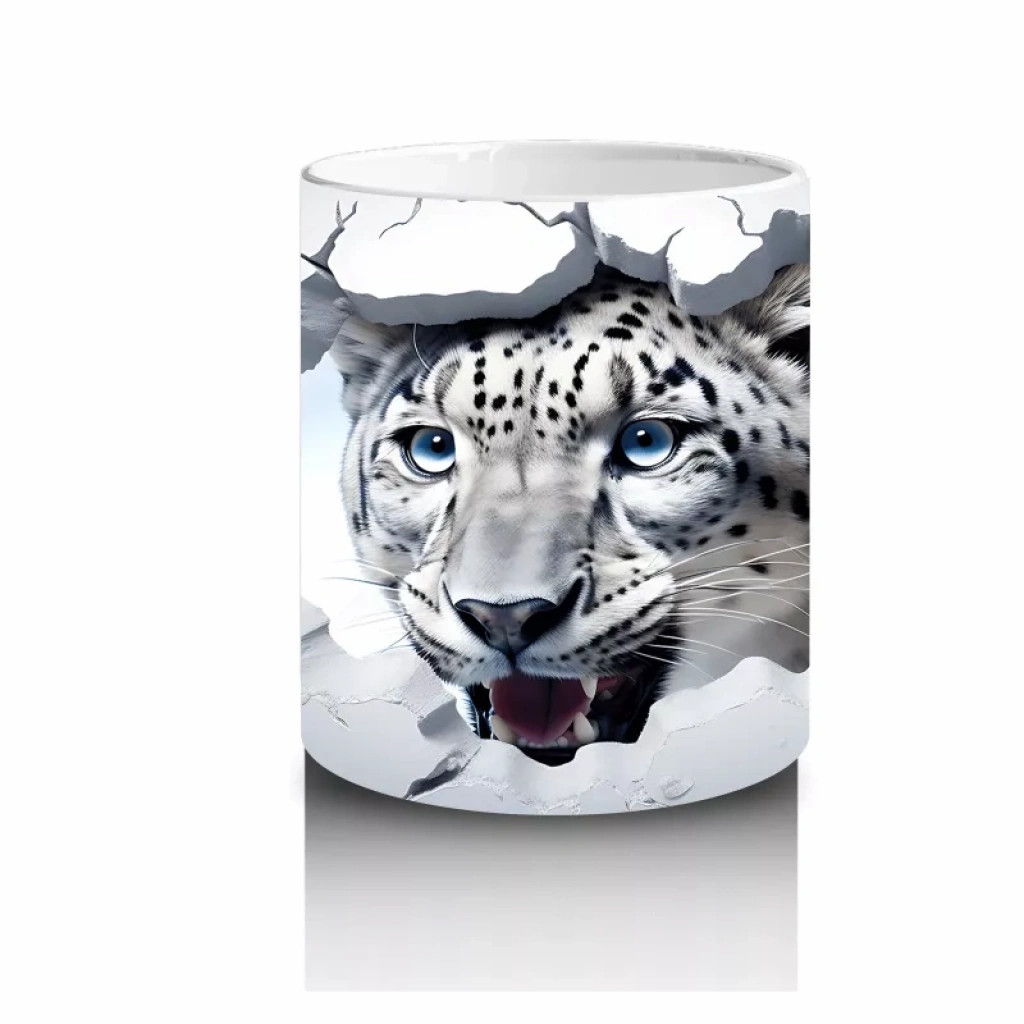 Çatlamış zemin arasından dikkatle bakan kaplan figürü, gücü ve gizemi bir arada yansıtıyor. Vahşi doğanın etkileyici duruşunu sevenler için cesur ve karizmatik bir kupa tasarımı.