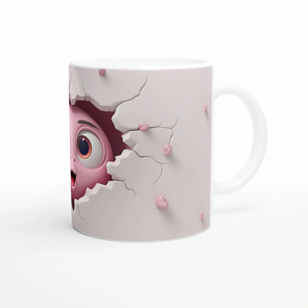 Çatlaktan Bakan Karikatürik Yüzlü Sevimli Canlı Temalı Baskılı Kupa Bardak, sade arka planı ve minik kalp detaylarıyla neşeli bir tasarım sunuyor. Mizahı ve sevimliliği bir arada sevenler için keyifli bir seçim.