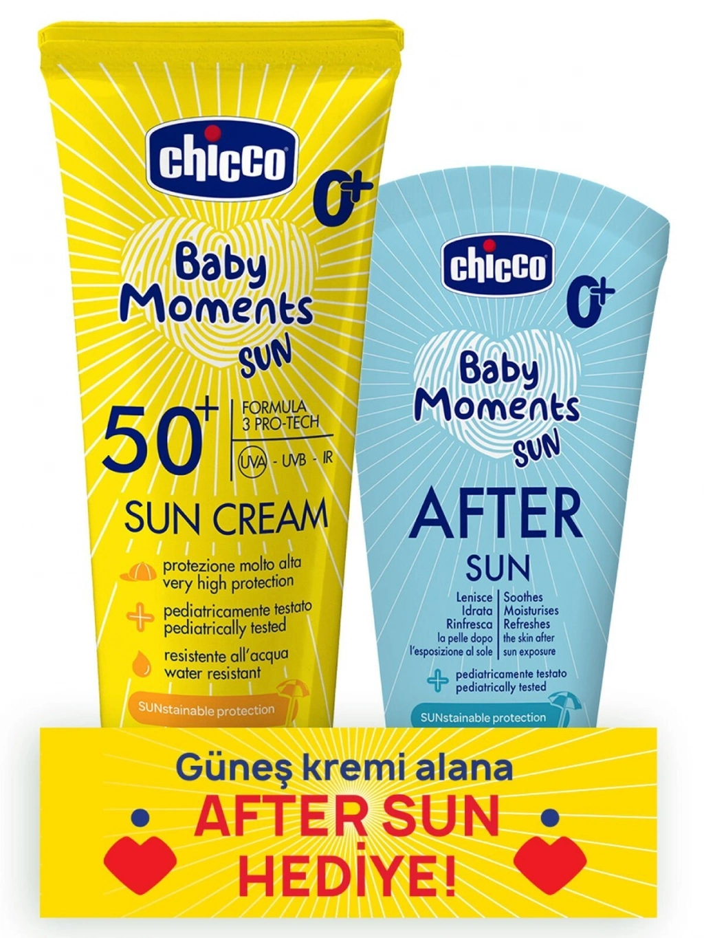 Chicco Baby Moments Sun Güneş Kremi Spf 50+ 75 ml + After Sun Hediye Özellikleri;