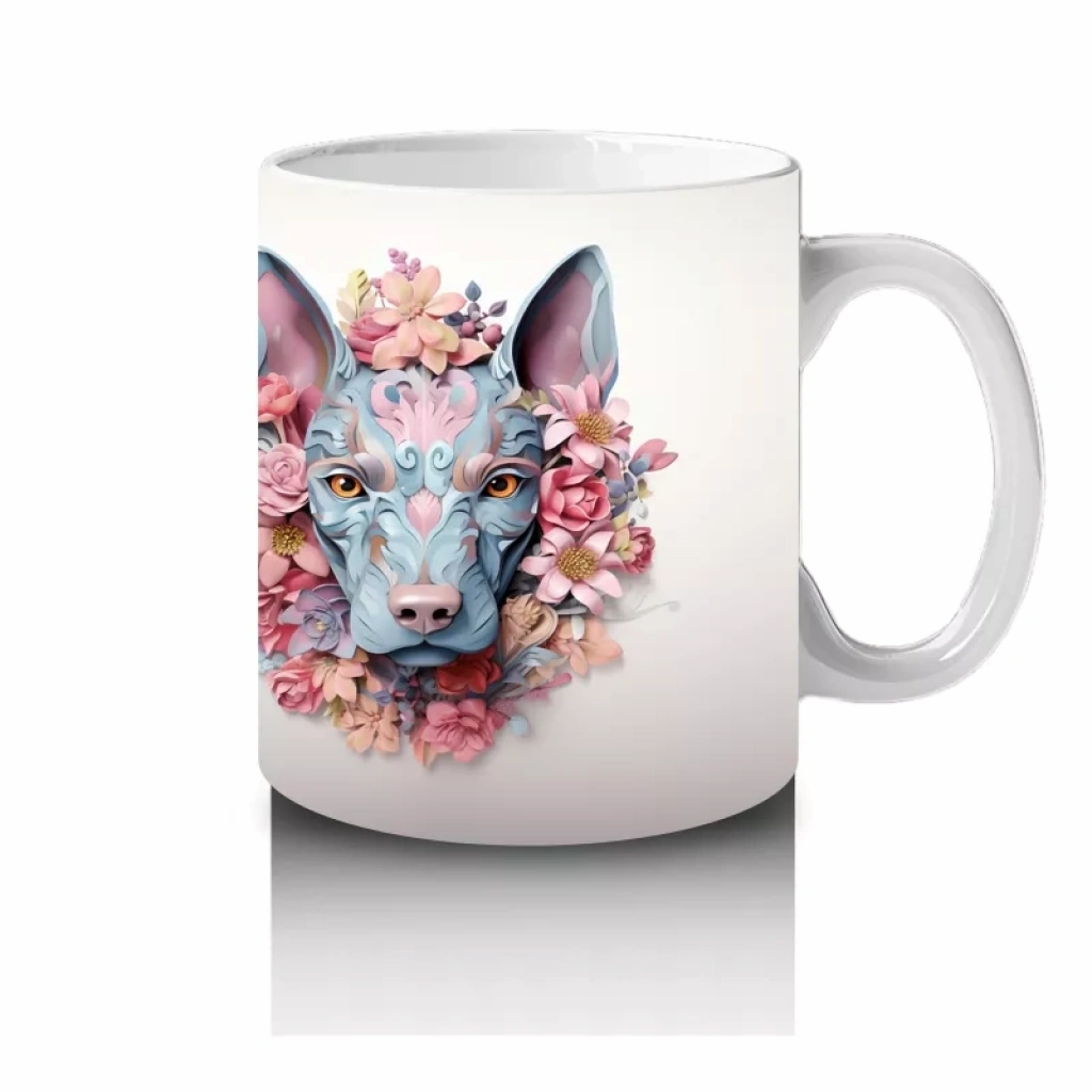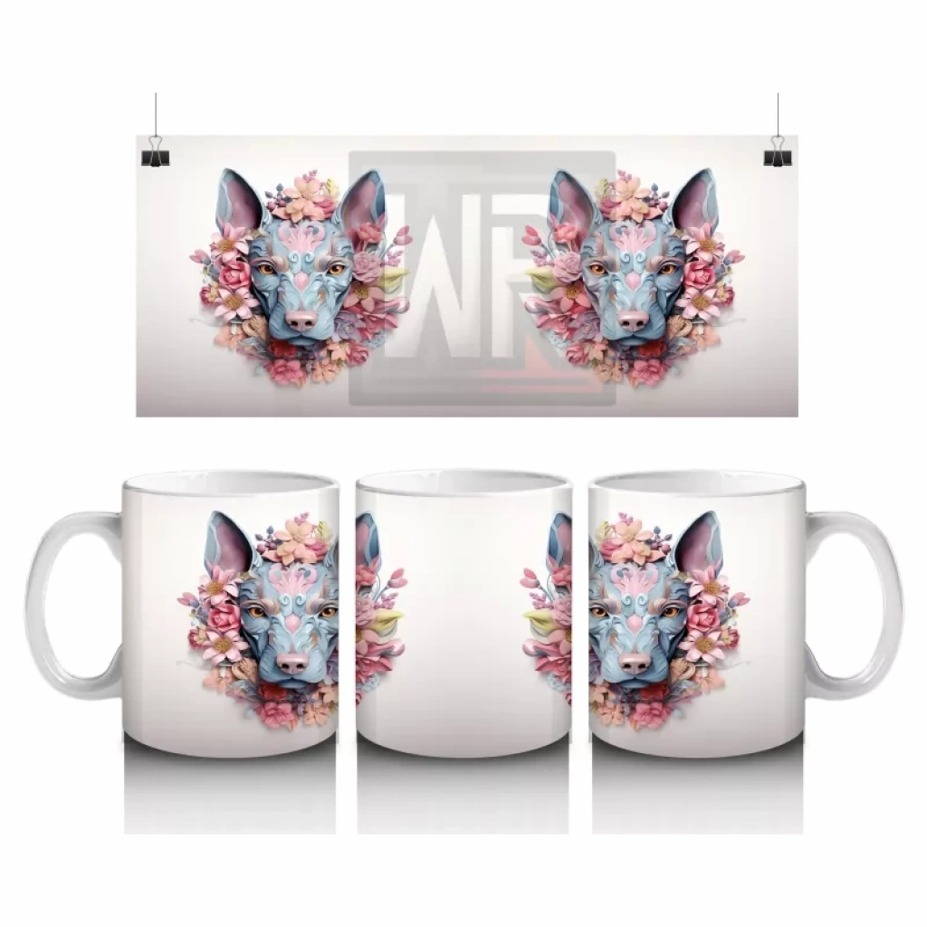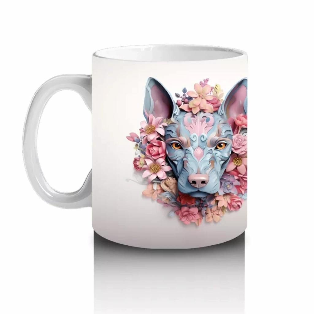 Çiçeklerden oluşan renkli tavşan kafaları, simetrik ve estetik bir görünüm sunuyor. Canlı ve sanatsal detayları sevenler için ideal bir kupa.