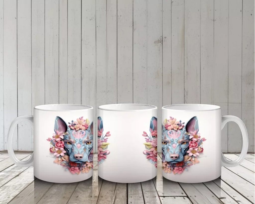 Çiçeklerden Oluşmuş Renkli Köpek Kafaları (Simetrik) - Baskılı kahve kupası