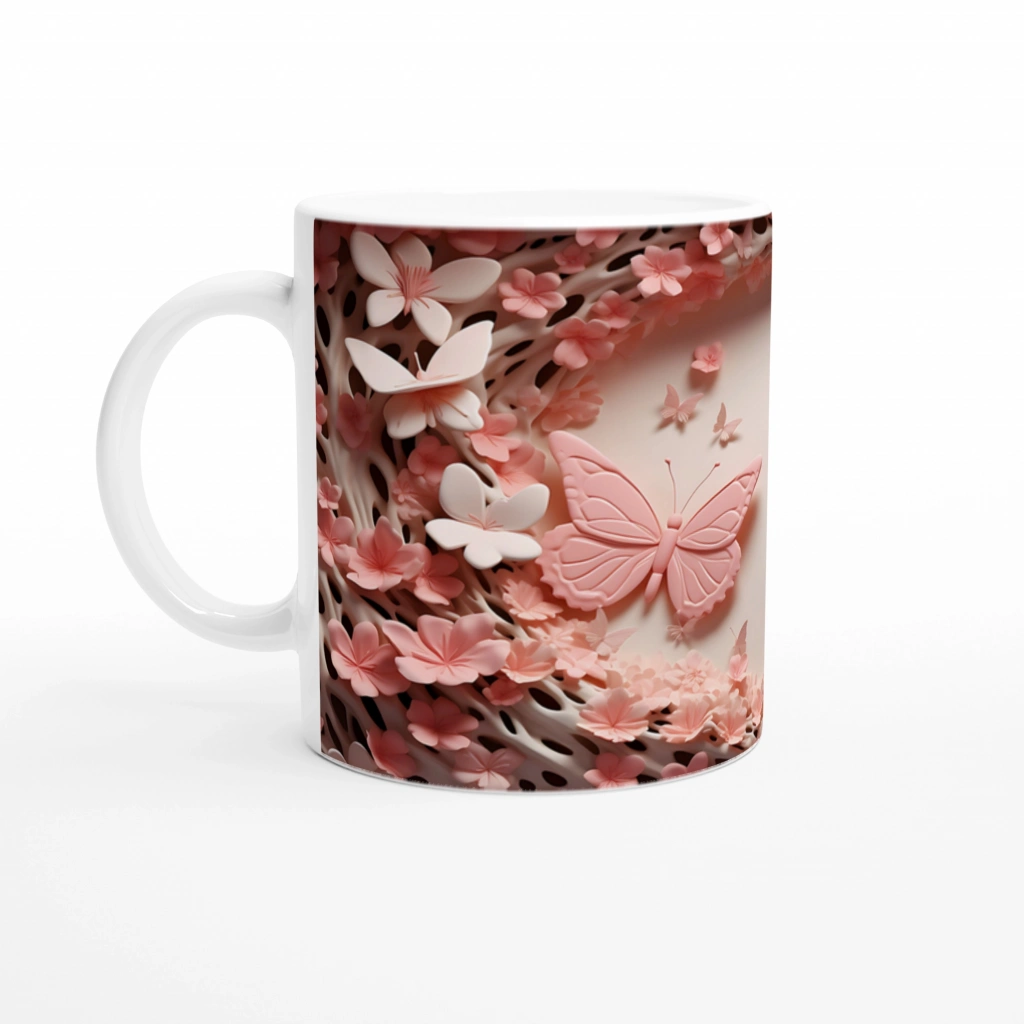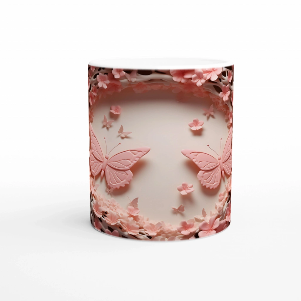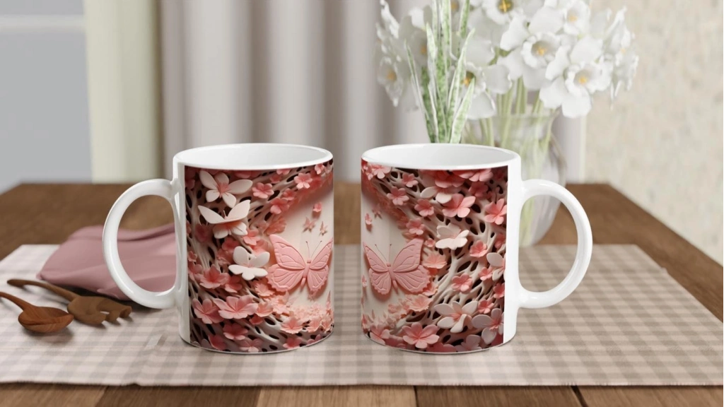 Çiçeklerin Kalbinde Dans Eden İkili Kelebek Temalı Baskılı Kupa Bardak, iç açıcı renk tonları ve yumuşak geçişlerle zarif bir atmosfer sunuyor. Romantik ve naif ruhlar için tasarlandı.