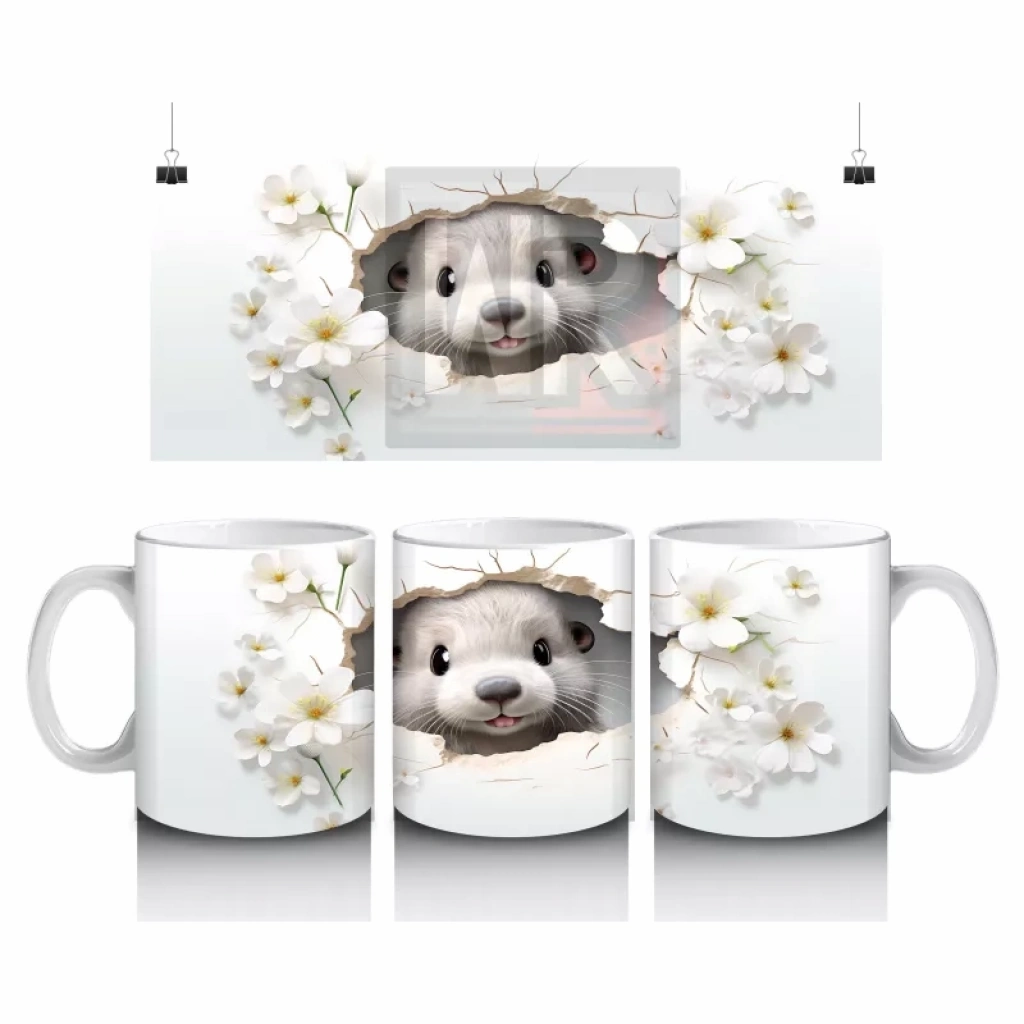 Çiçeklerle Süslenmiş Duvar Arasında Bakan Sevimli Su Samuru – Baskılı Kahve Kupası