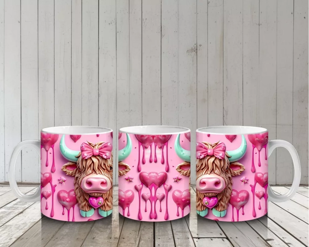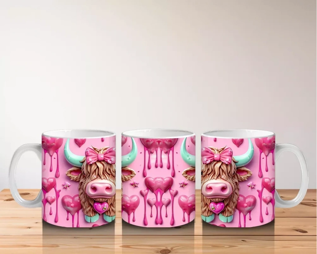 Çift Boynuzlu İnek Figürleri Kalplerle – Baskılı Kahve Kupası