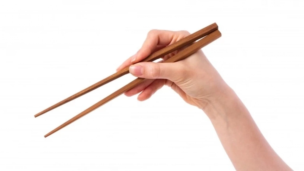 • Çubuklardan birini, ince kısmı tabağa bakacak şekilde işaret parmağınız ile orta parmağınız arasına sıkıştırın.
