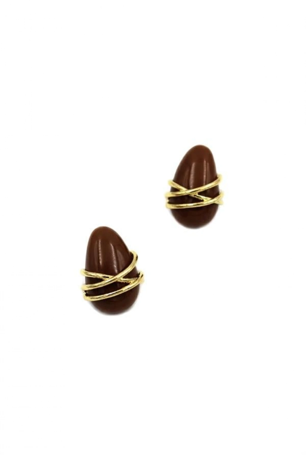 Çizgili Damla Küpe - Kahverengi