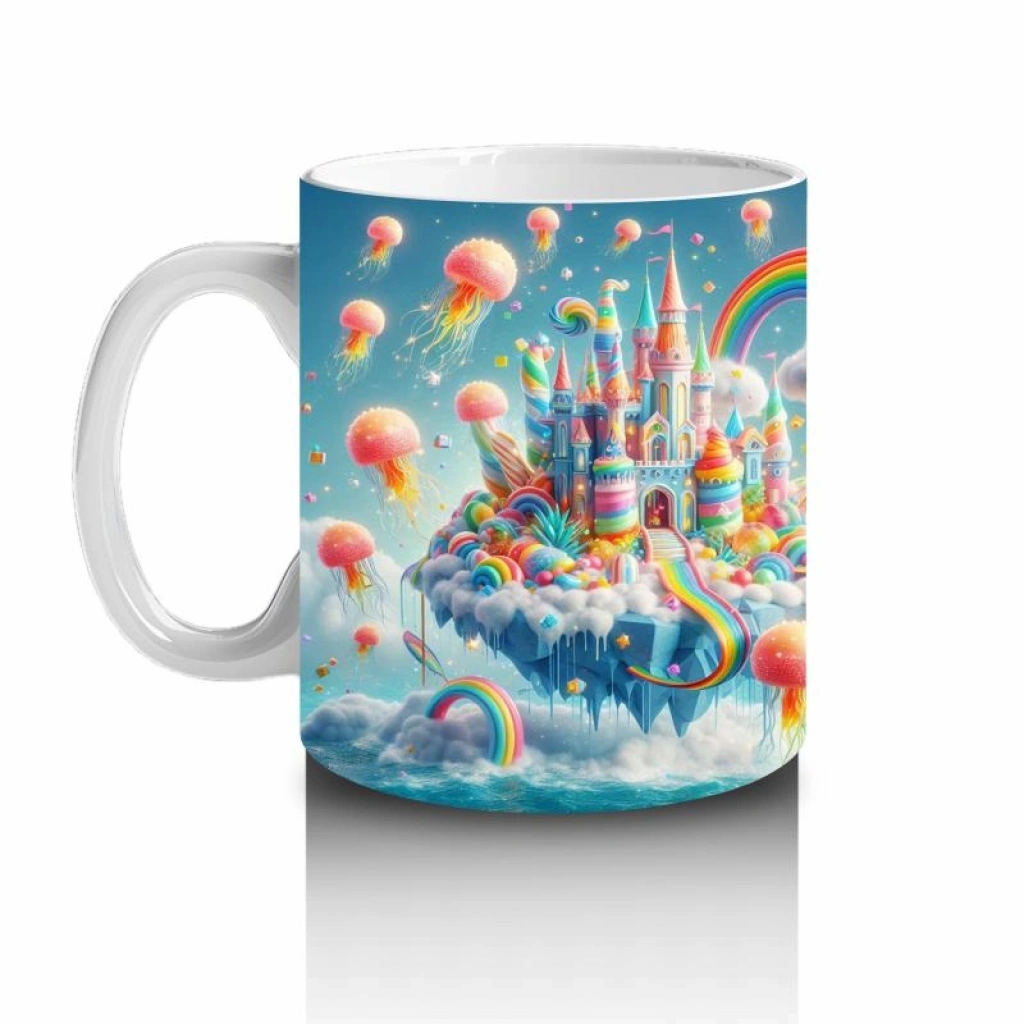 Rengârenk balonlar ve gökkuşağıyla süslenmiş masalsı bir şato… Bu eğlenceli kupa, süt saatlerini minikler için tatlı bir kutlamaya dönüştürüyor.