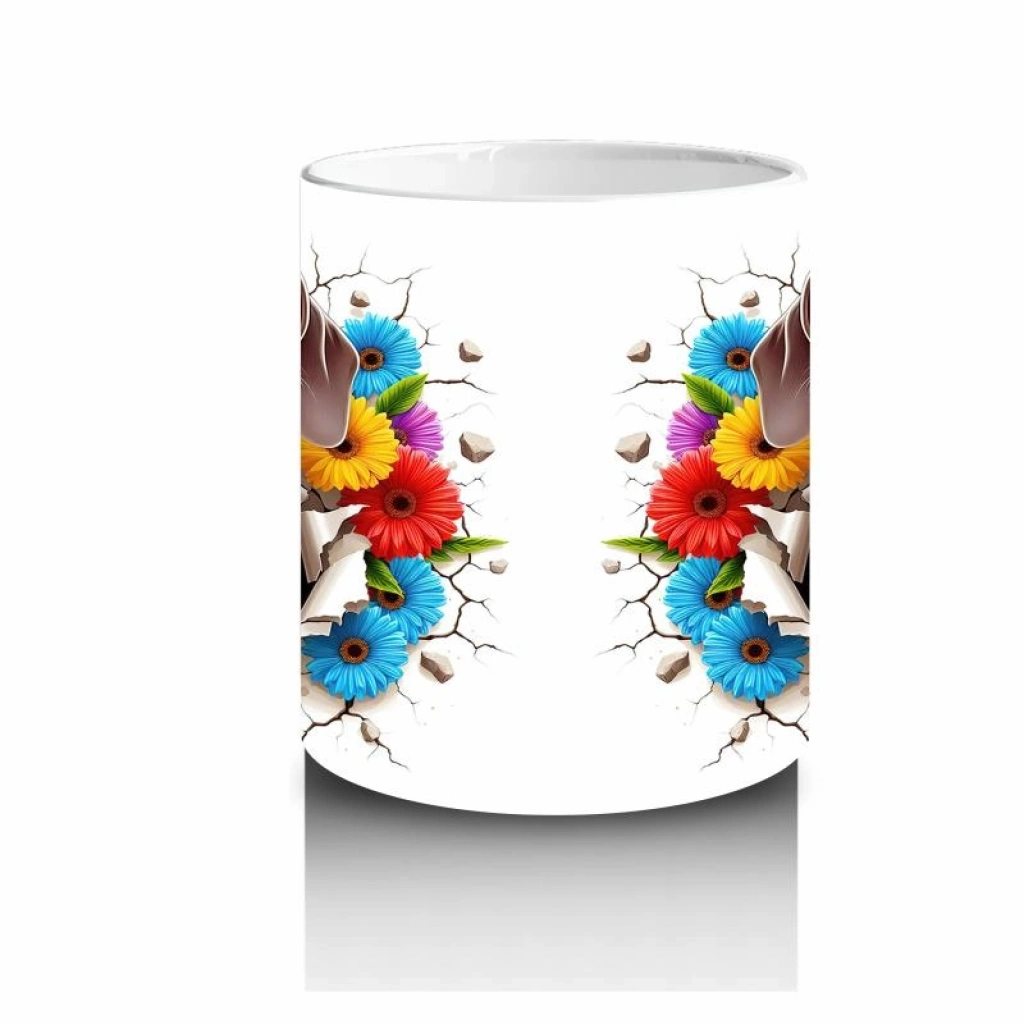 Çocuklara Sütü Sevdiren Çiçek Buketli Yavru Köpek Kupa Bardak
