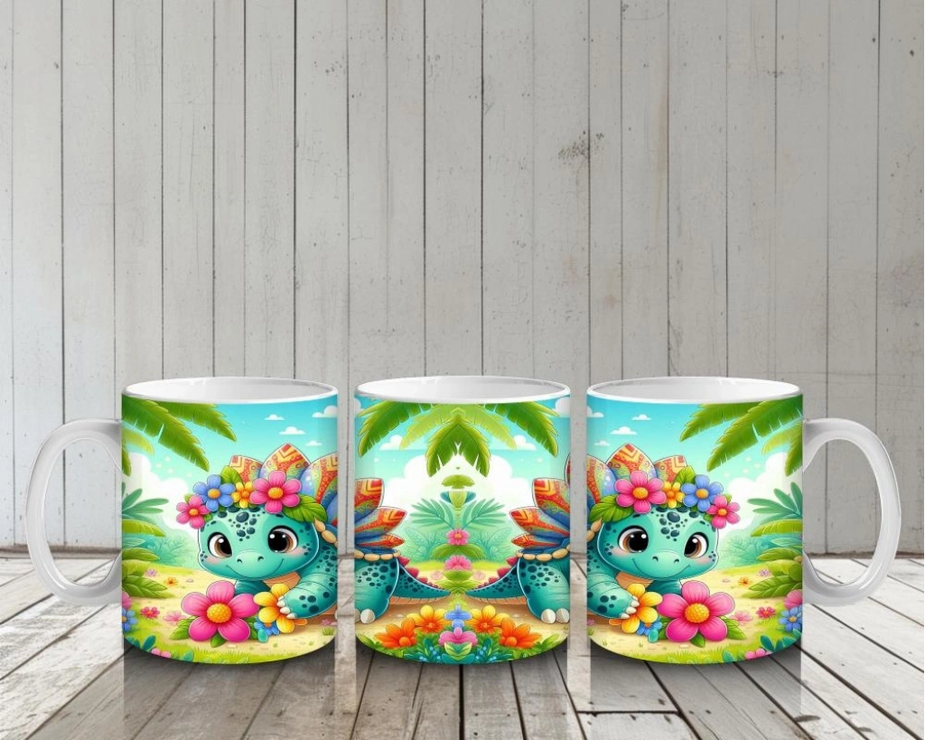 Çocuklara Sütü Sevdiren Çiçek Taçlı Sevimli Dinozor Desenli Kupa Bardak