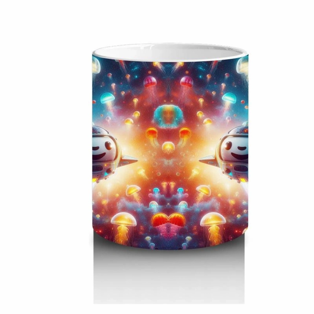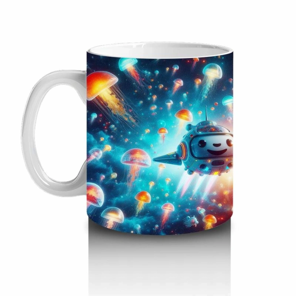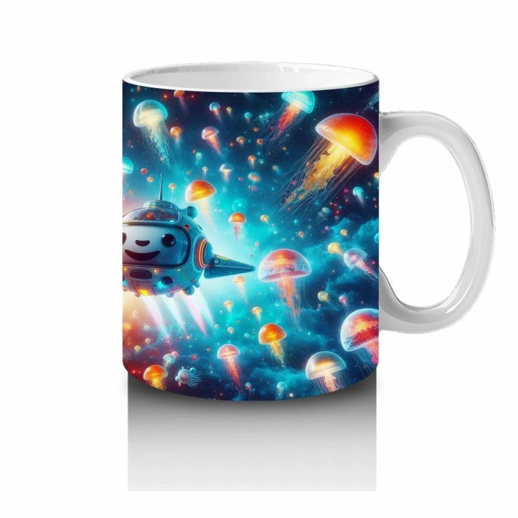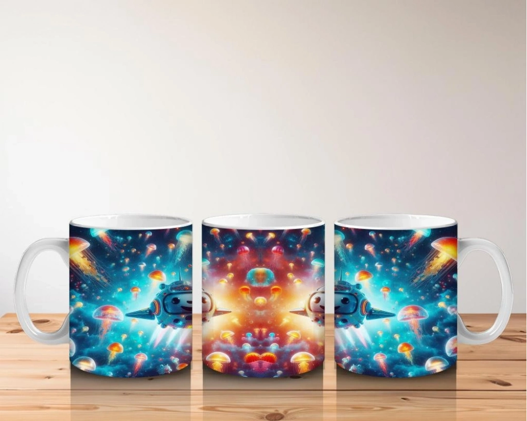Çocuklara Sütü Sevdiren Denizaltı Roketleri ve Işık Saçan Denizanası Ormanı Desenli Kupa Bardak