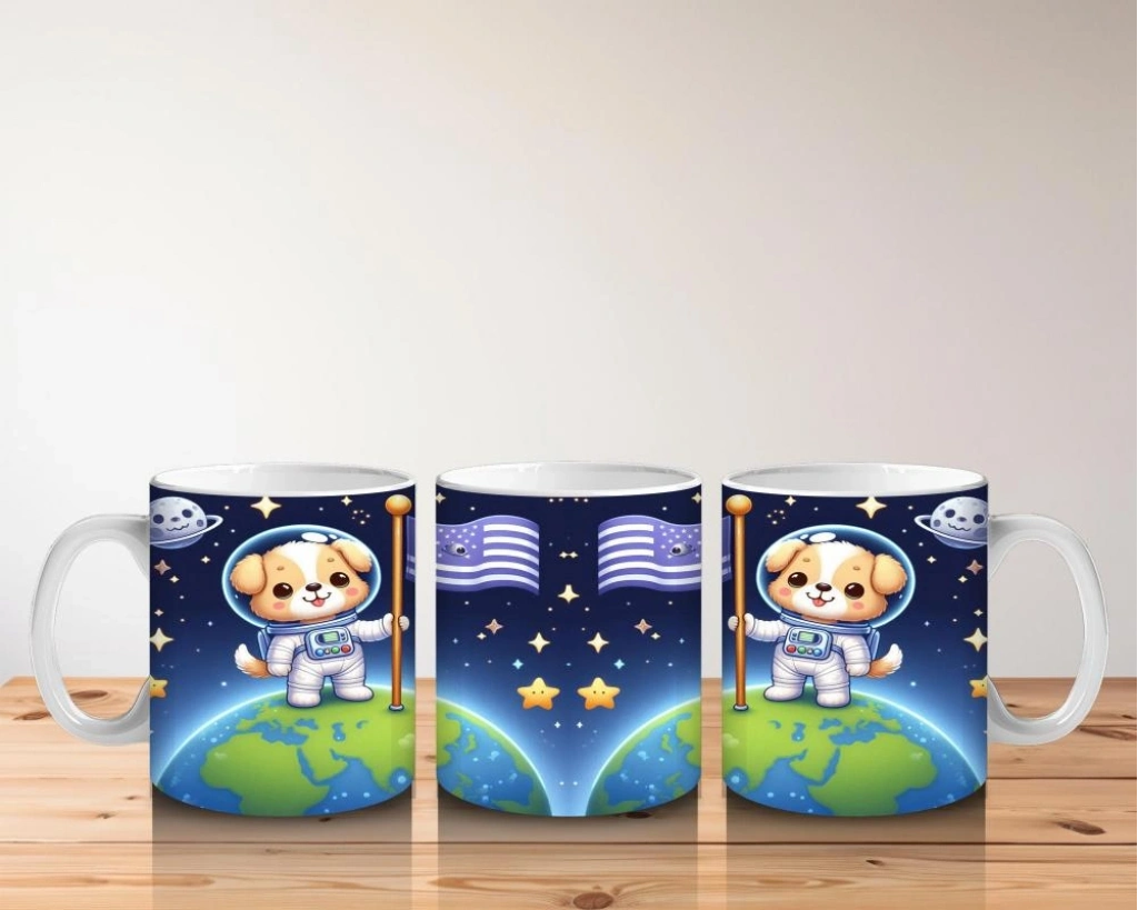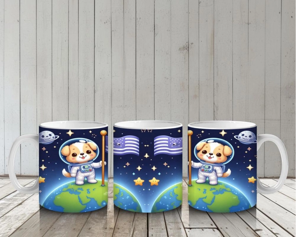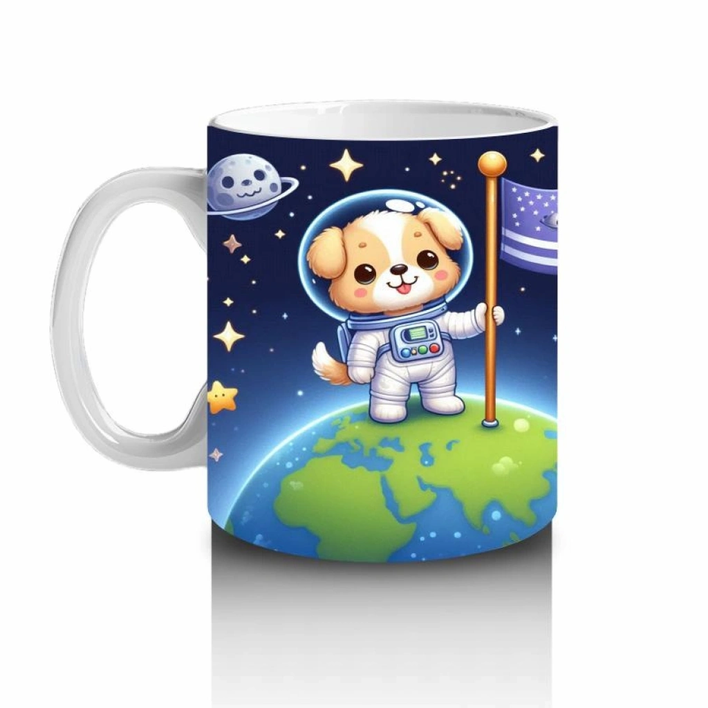 Çocuklara Sütü Sevdiren Dünyaya Bayrak Diken Astronot Köpek Desenli Kupa Bardak