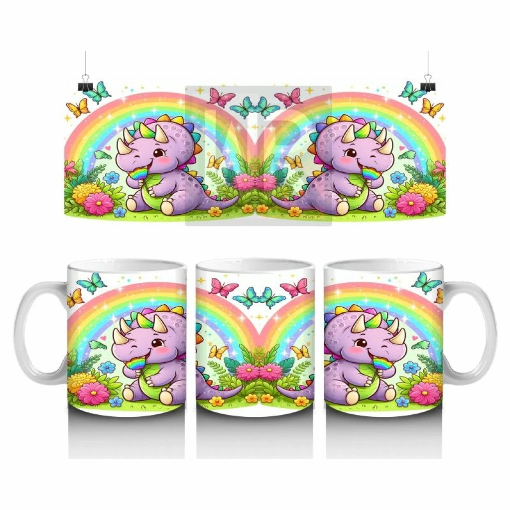 Çocuklara Sütü Sevdiren Gökkuşağı Şekerli Sevimli Dinozor Desenli Kupa Bardak