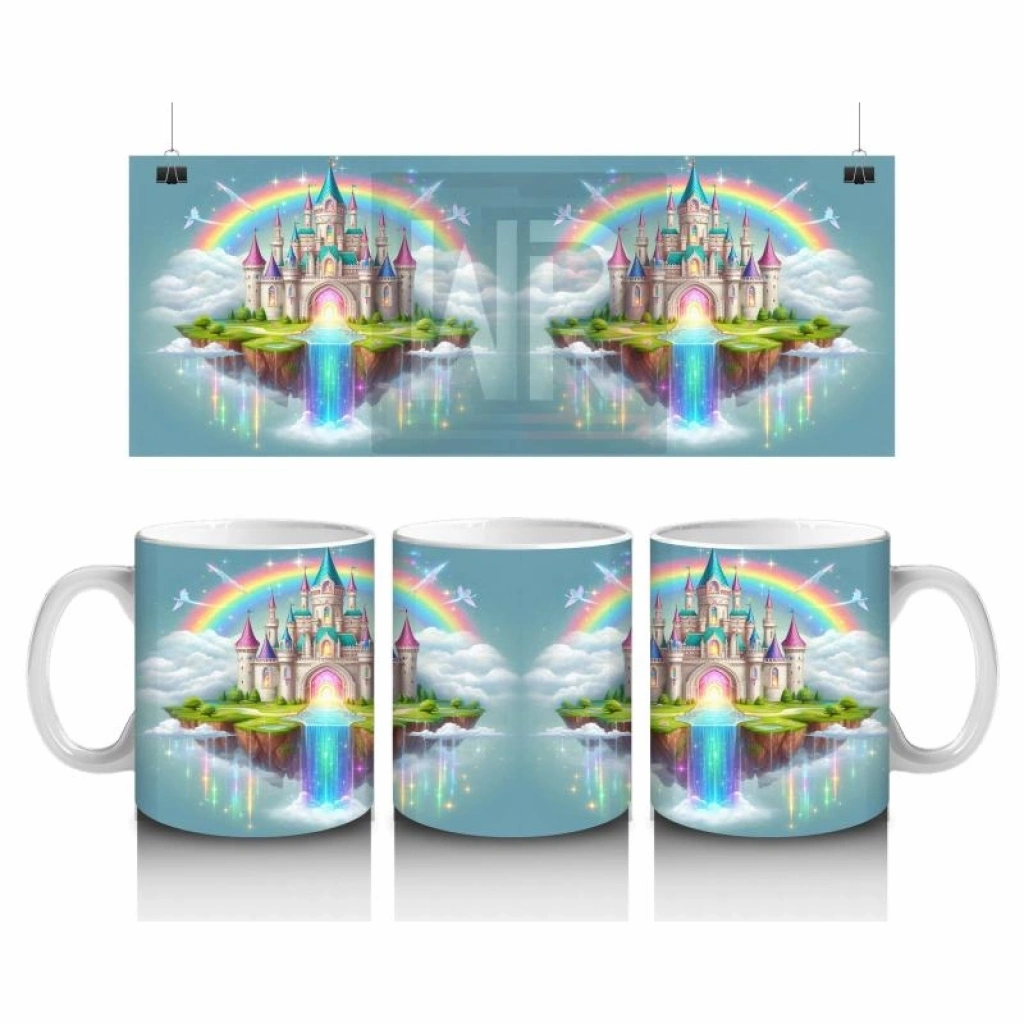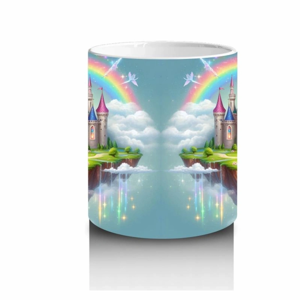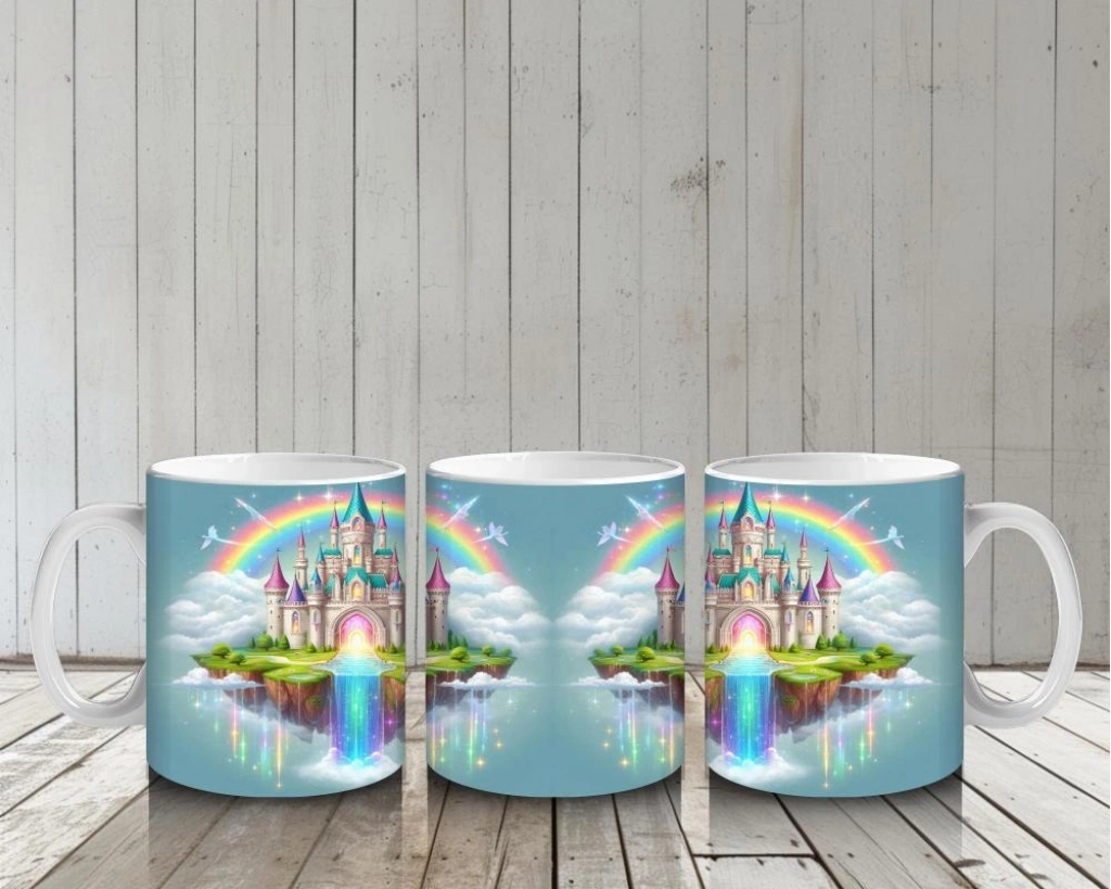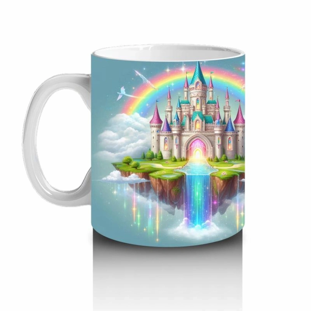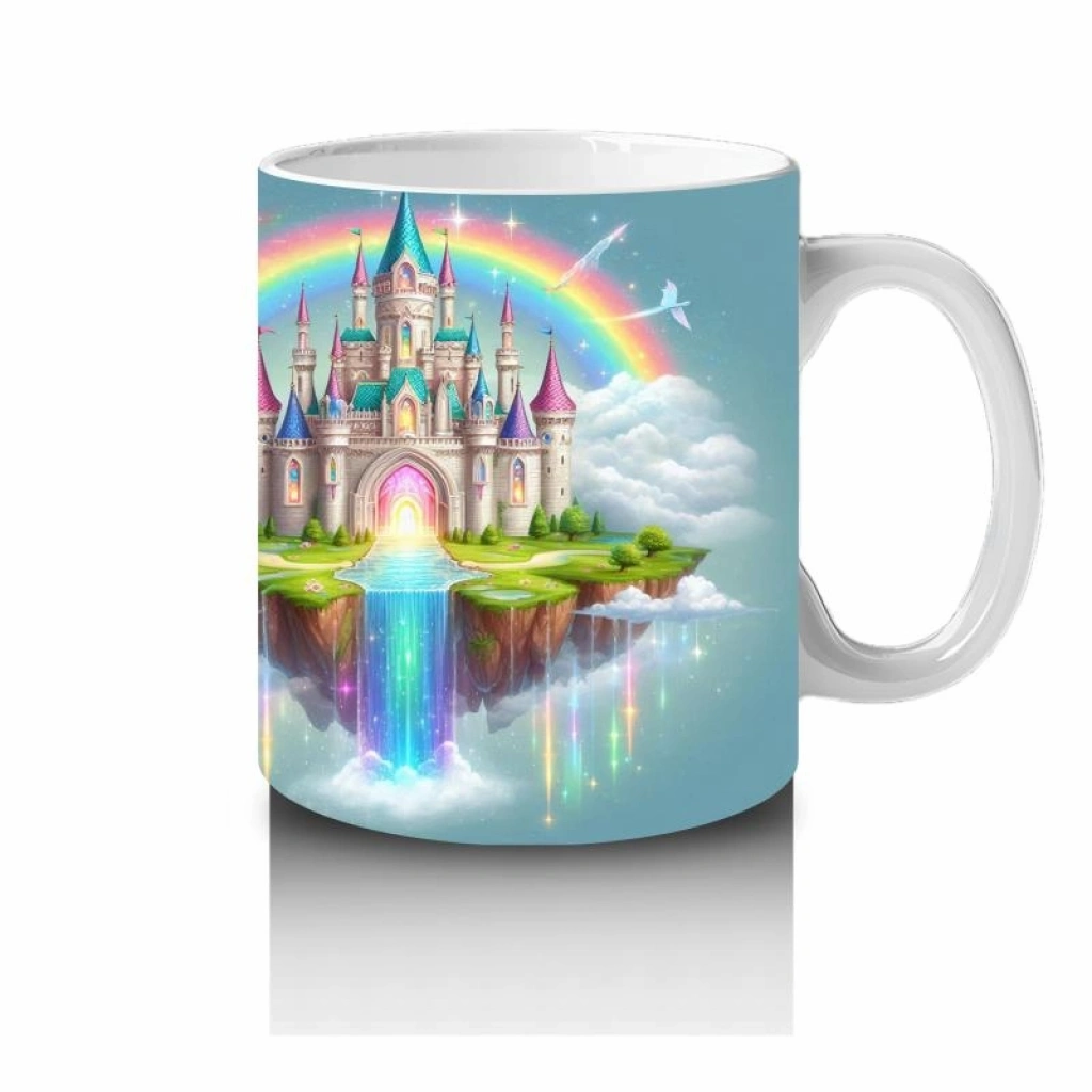 Çocuklara Sütü Sevdiren Gökkuşağıyla Aydınlanan Masal Şatosu Desenli Kupa Bardak