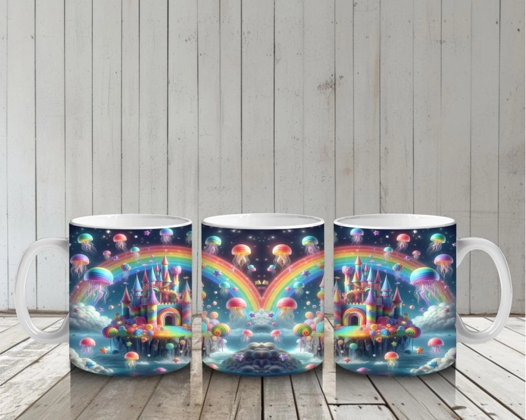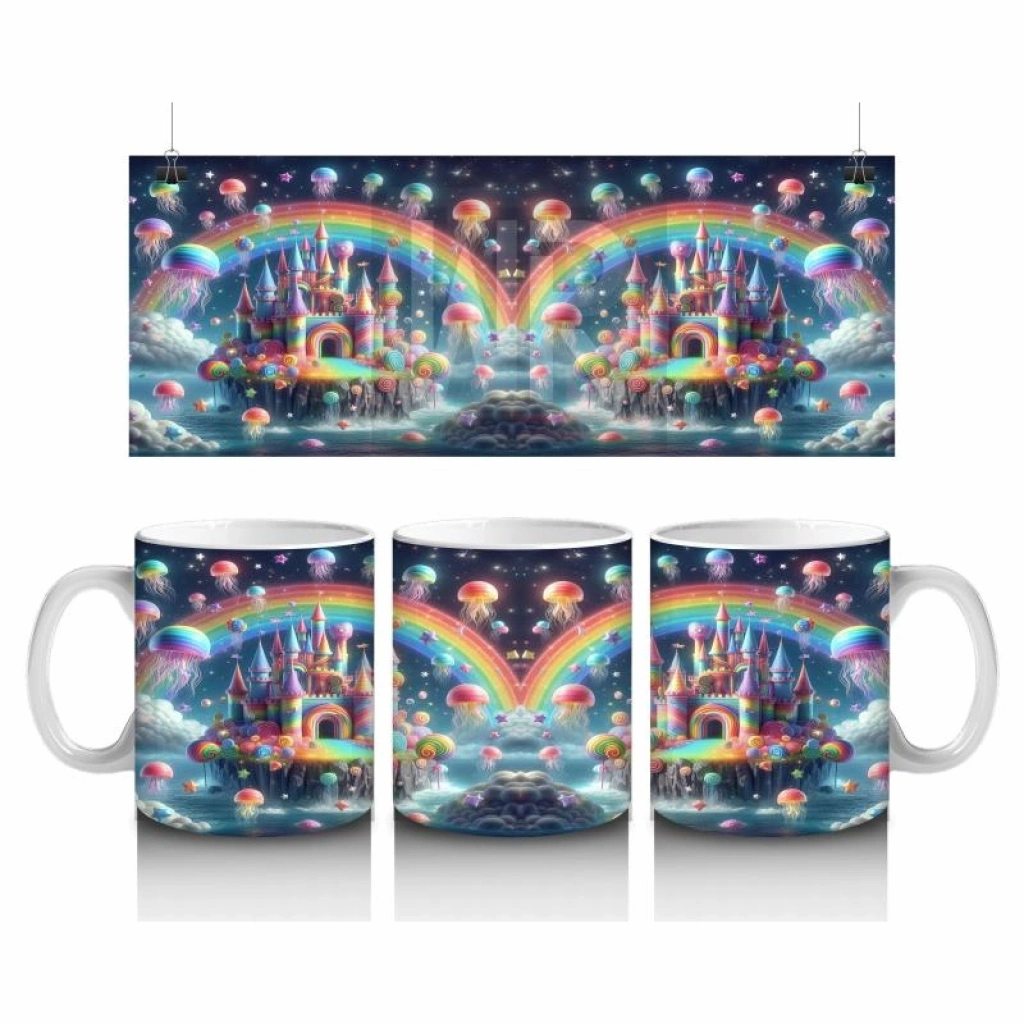 Gökkuşağı ışıklarıyla parlayan bu masal şatosu, her süt yudumunu sihirli bir hikâyeye dönüştürüyor. Minikler için rüya gibi bir tasarım!