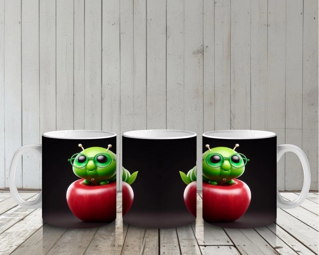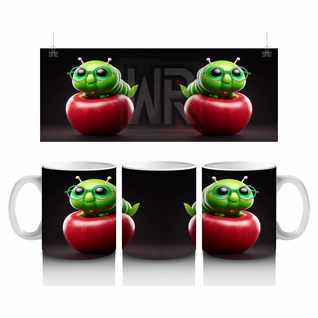 Çocuklara Sütü Sevdiren Gözlüklü Elma Kurdu Desenli Kupa Bardak