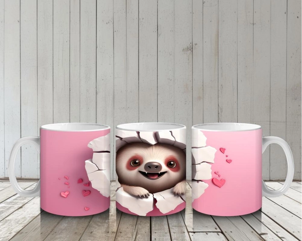 Çocuklara Sütü Sevdiren Kalp Çatlağından Bakan Sevimli Tembel Hayvan Kupa Bardak