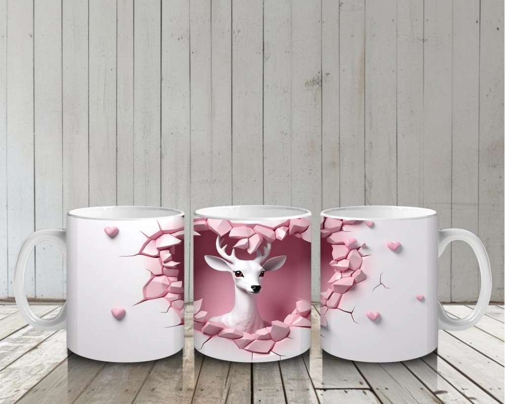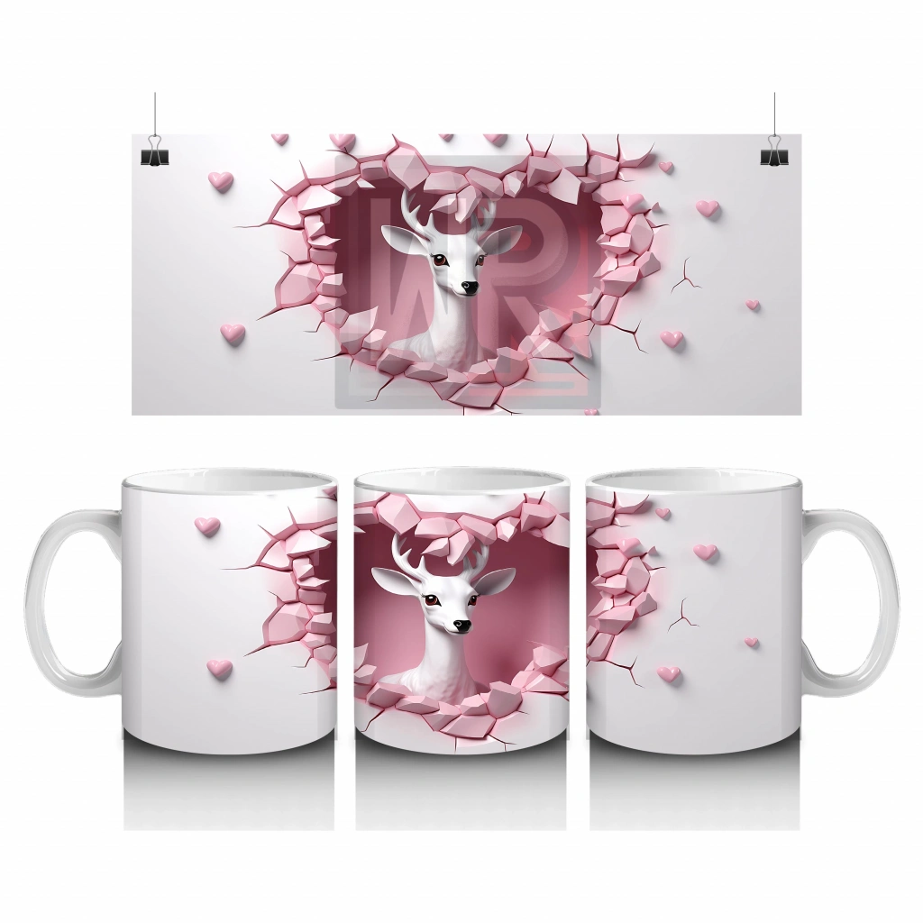 Çocuklara Sütü Sevdiren Kalp Çerçevesindeki Zarif Geyik Kupa Bardak