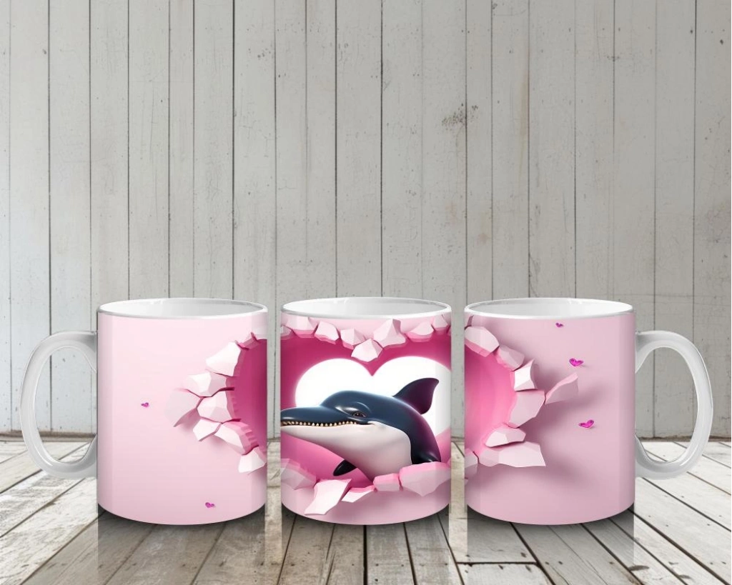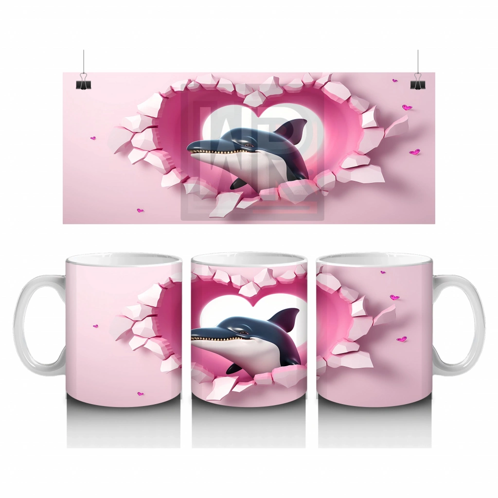 Çocuklara Sütü Sevdiren Kalp Çerçevesinden Bakan Neşeli Yunus Kupa Bardak