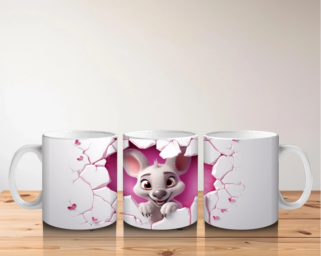 Çocuklara Sütü Sevdiren Kalp Çerçevesinden Fırlayan Neşeli Tavşan Kupa Bardak