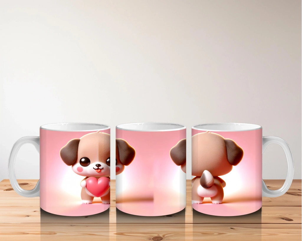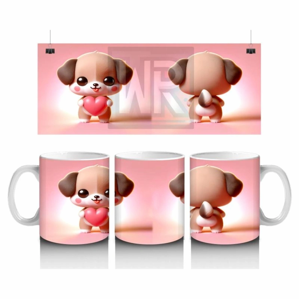 Çocuklara Sütü Sevdiren Kalp Tutan Yavru Köpek Kupa Bardak