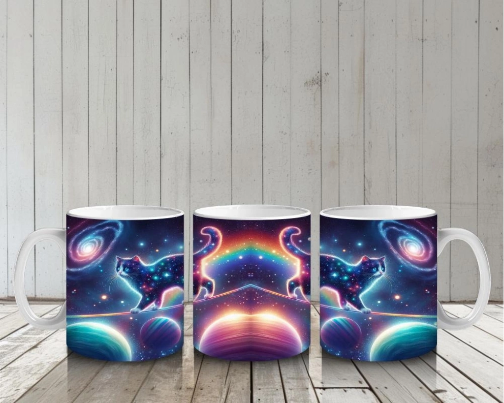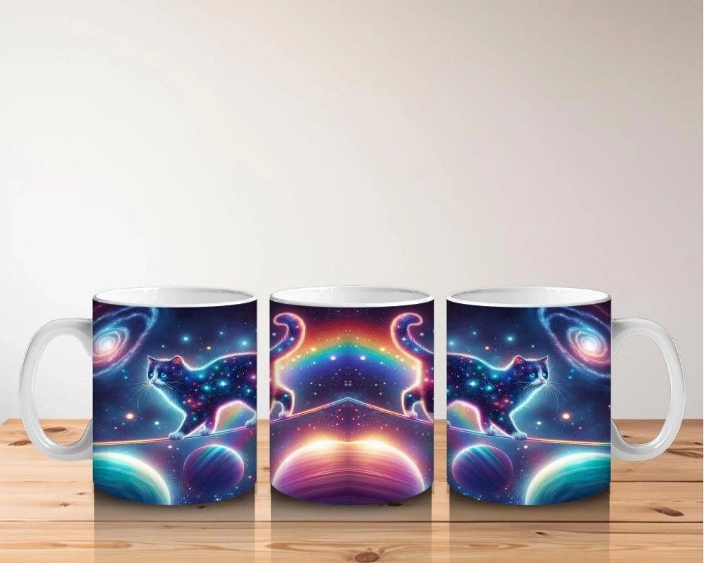 Galaksiler arası süzülen tatlı kedilerle dolu bu tasarım, süt saatini çocuklar için uzay dolu bir eğlenceye çeviriyor.