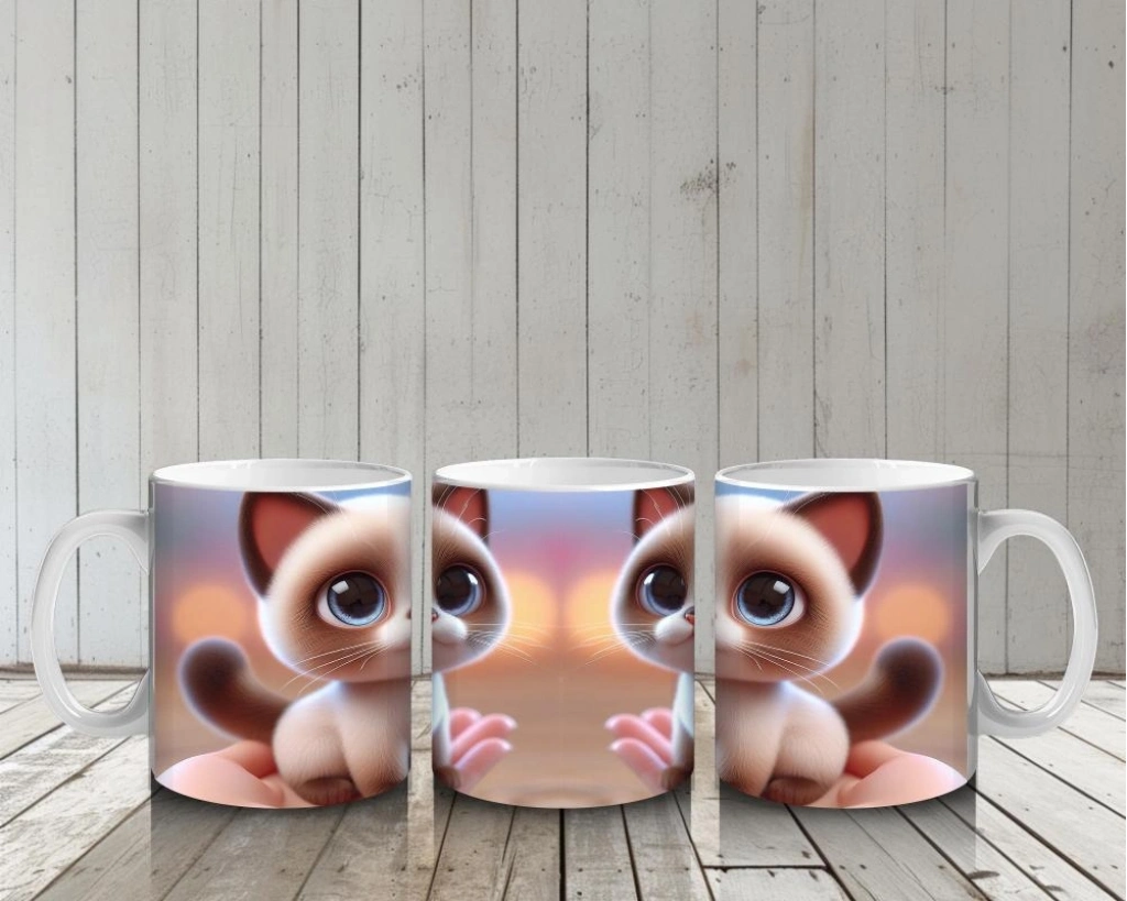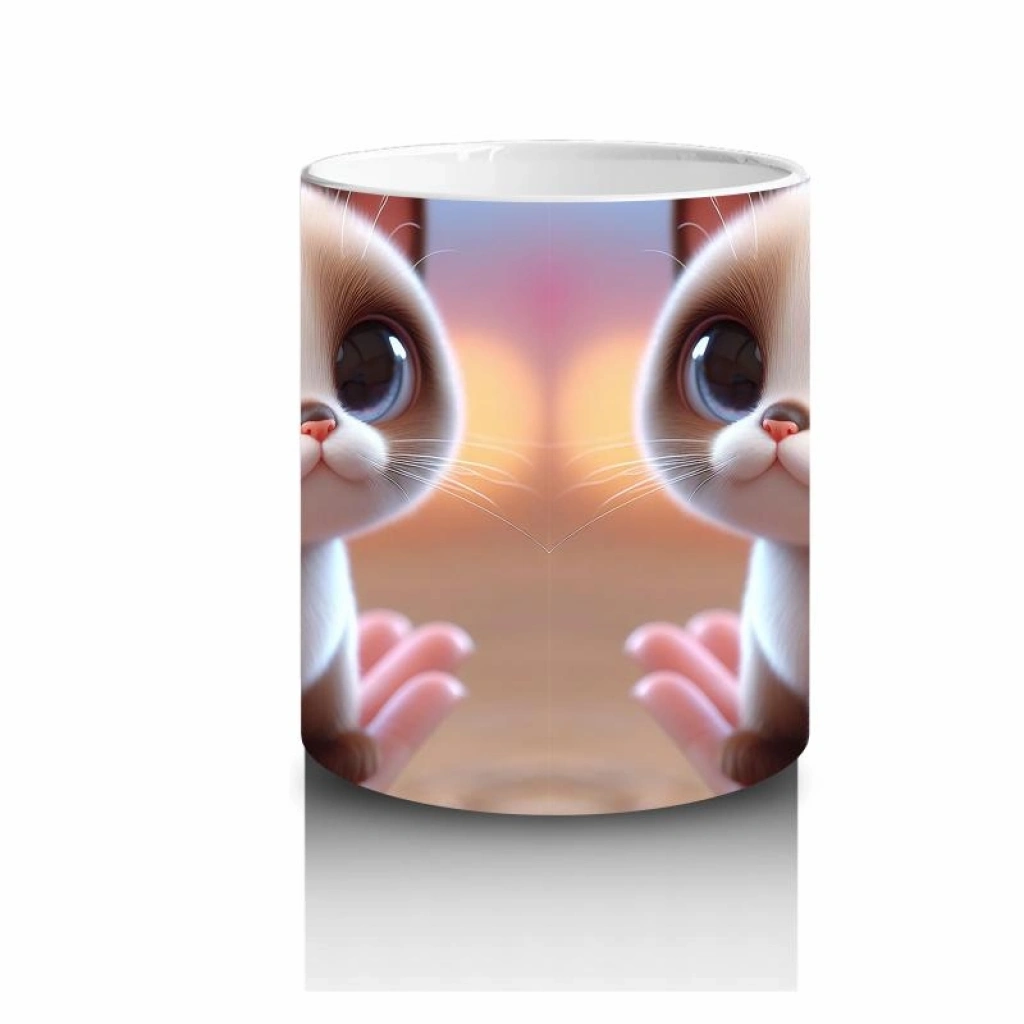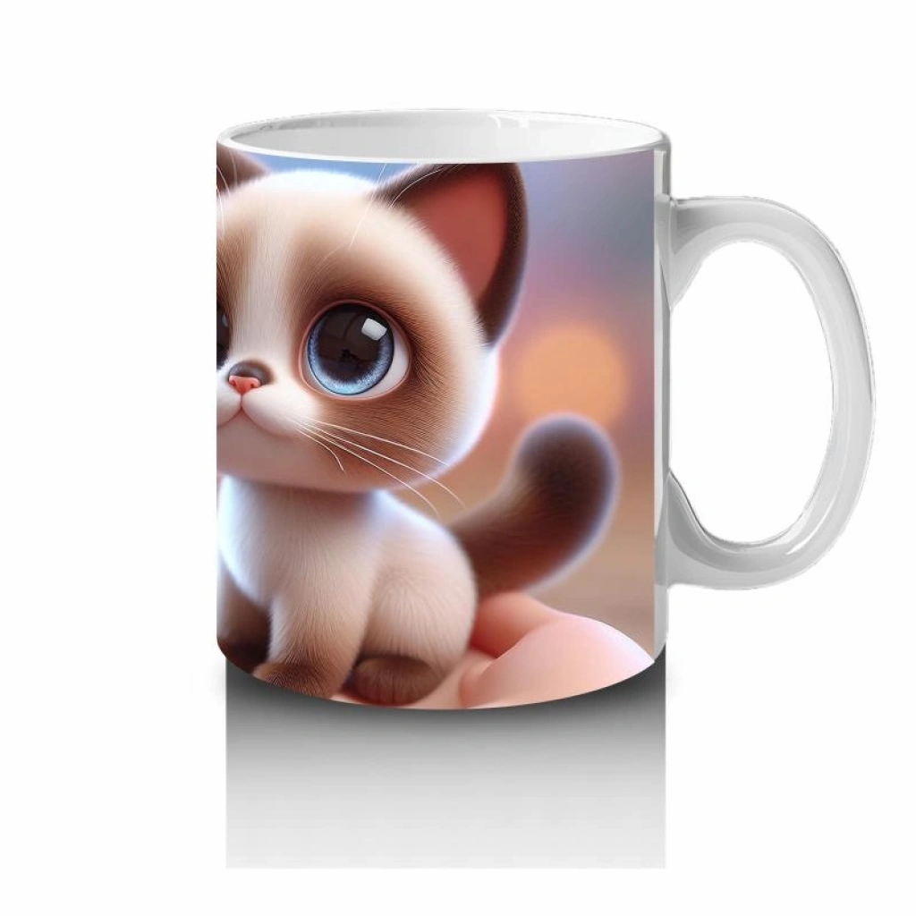 Çocuklara Sütü Sevdiren Mavi Gözlü Tatlı Kedi Kupa Bardak