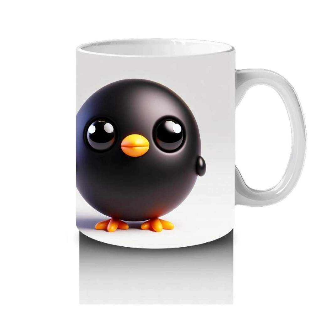 Çocuklara Sütü Sevdiren Neşeli Siyah Kuş Kupa Bardak