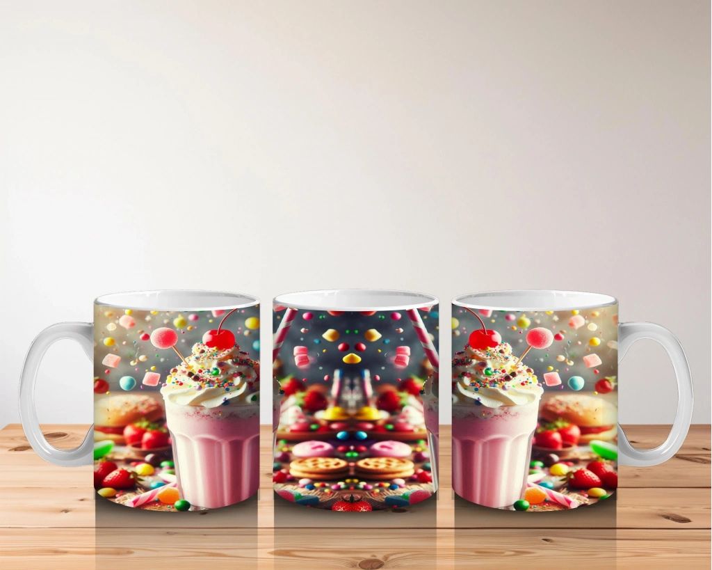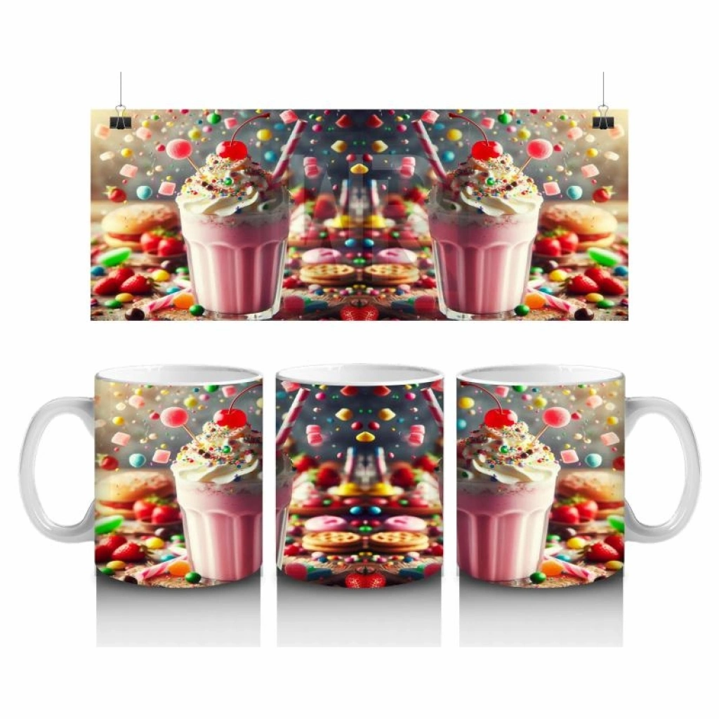 Çocuklara Sütü Sevdiren Renkli Şekerlerle Süslenmiş Milkshake Desenli Kupa Bardak