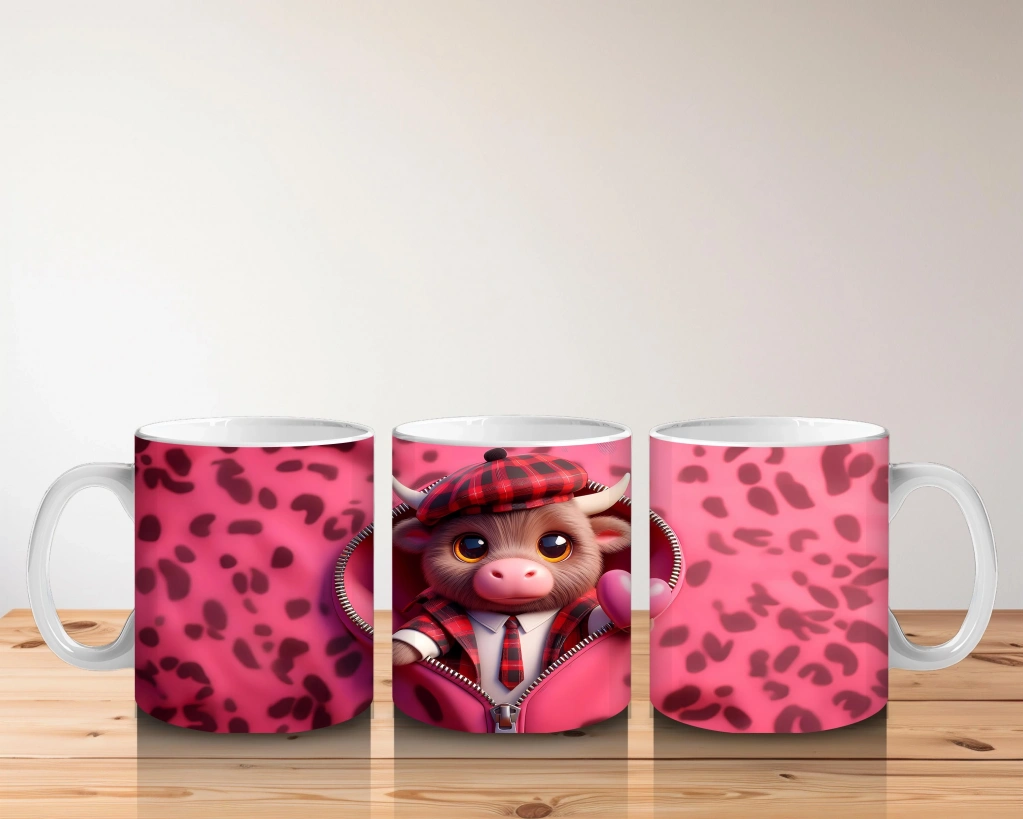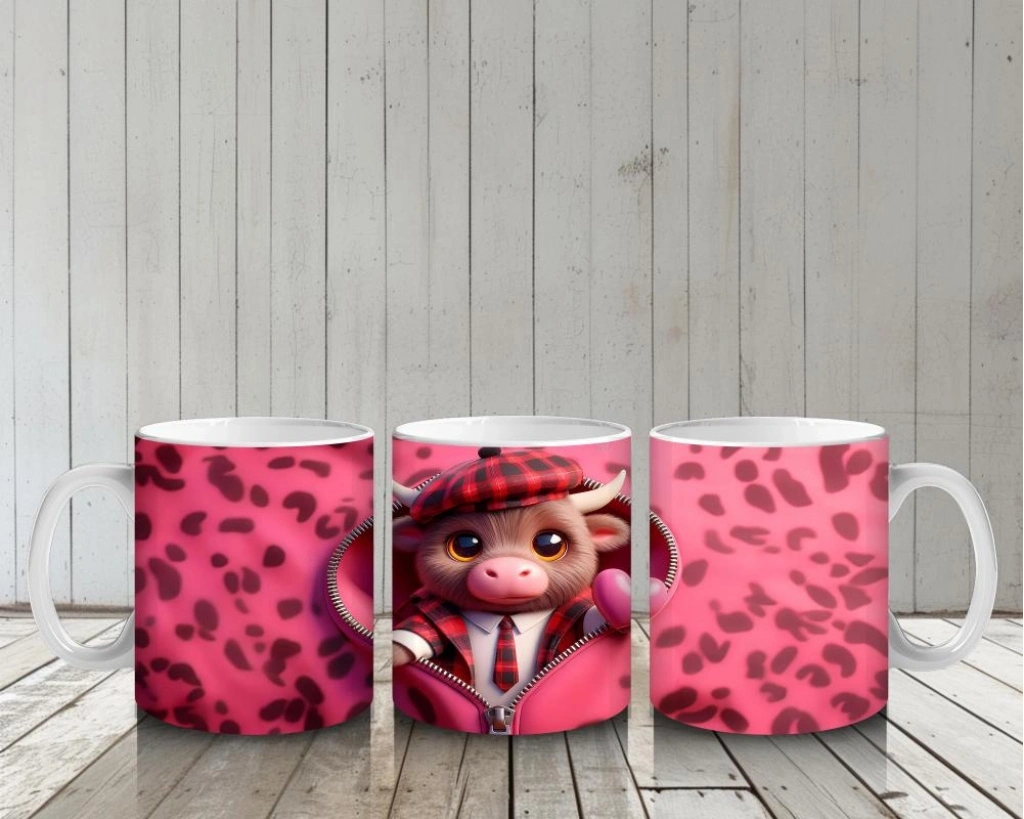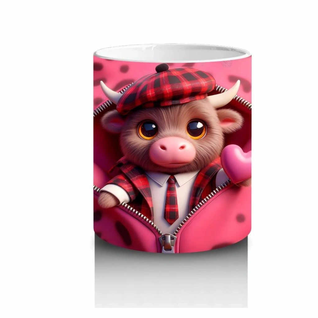 Çocuklara Sütü Sevdiren Şapkalı Sevimli Buzağı Desenli Kupa Bardak