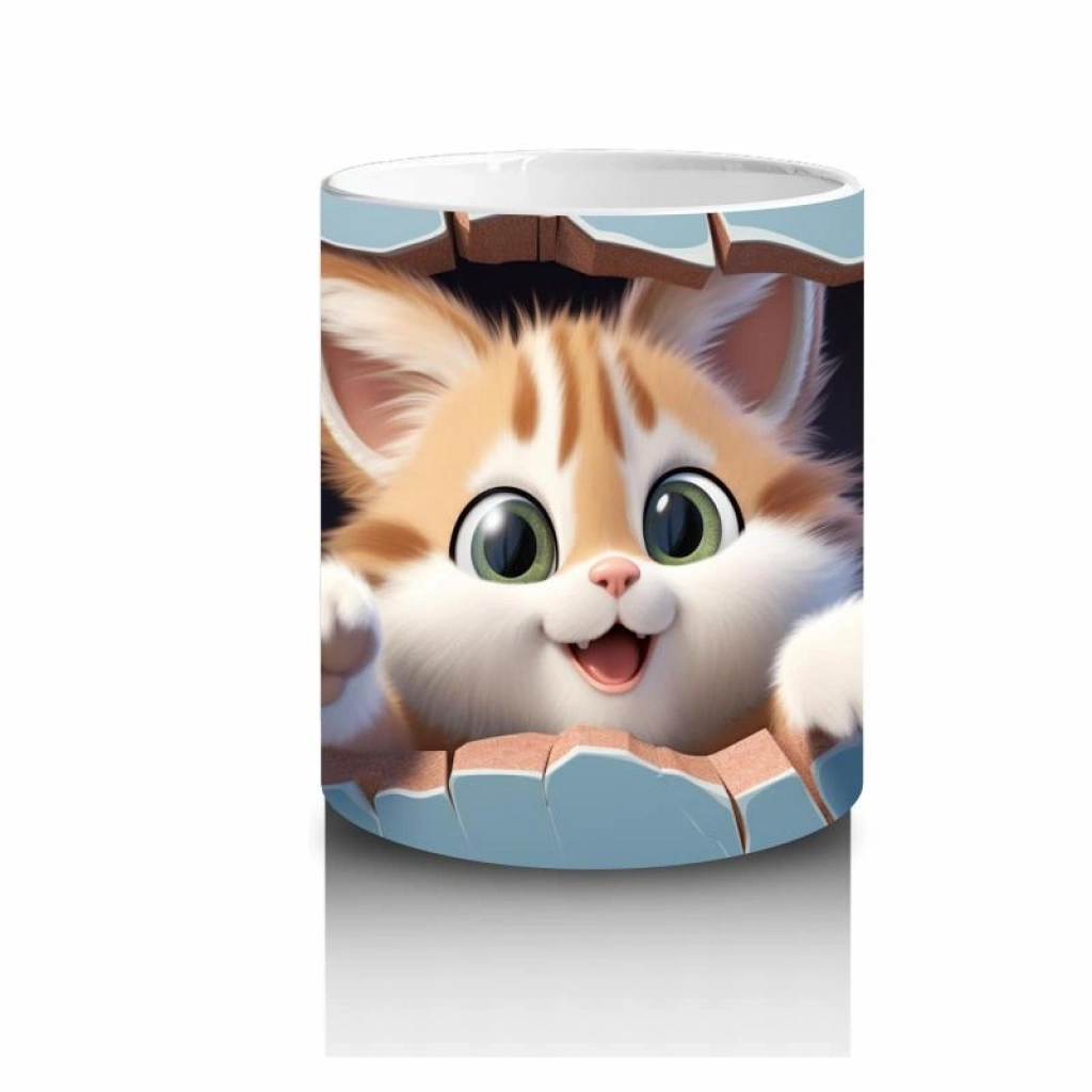 Çocuklara Sütü Sevdiren Sevimli Turuncu Yavru Kedi Desenli Kupa Bardak