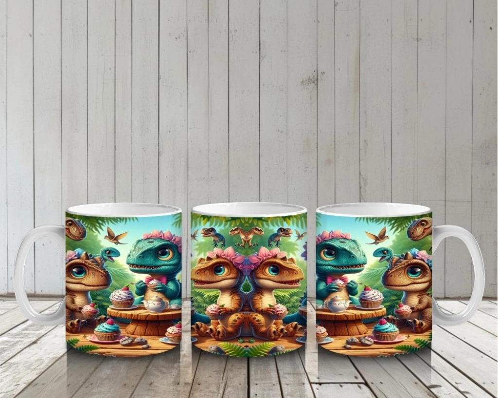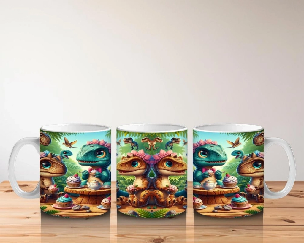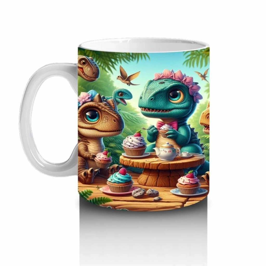 Çocuklara Sütü Sevdiren Tatlı Yiyen Sevimli Dinozorlar Desenli Kupa Bardak