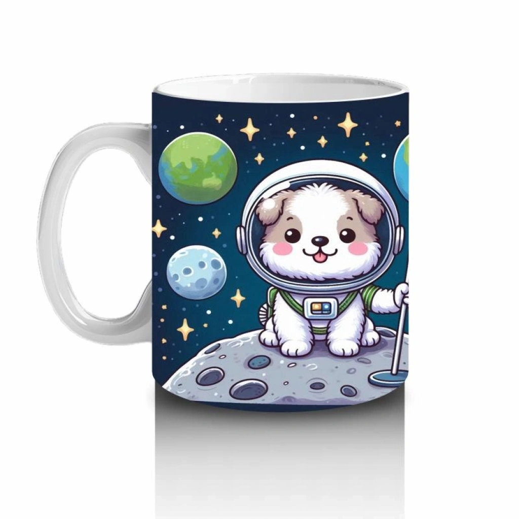 Uzayın derinliklerinde bayrağını gururla diken cesur bir köpek! Bu kahramanlık dolu tasarım, süt saatlerini galaktik bir maceraya çeviriyor.