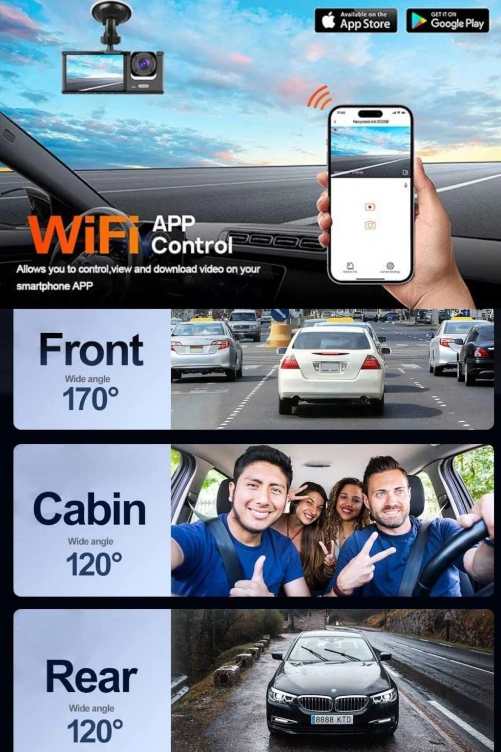 ÇOK SATAN 1s Wifi / App /1920p Fhd/ 170° Ultra Geniş Açı/gece Görüş/ G-sensörü 3 Kameralı Araç Kamerası(2025)