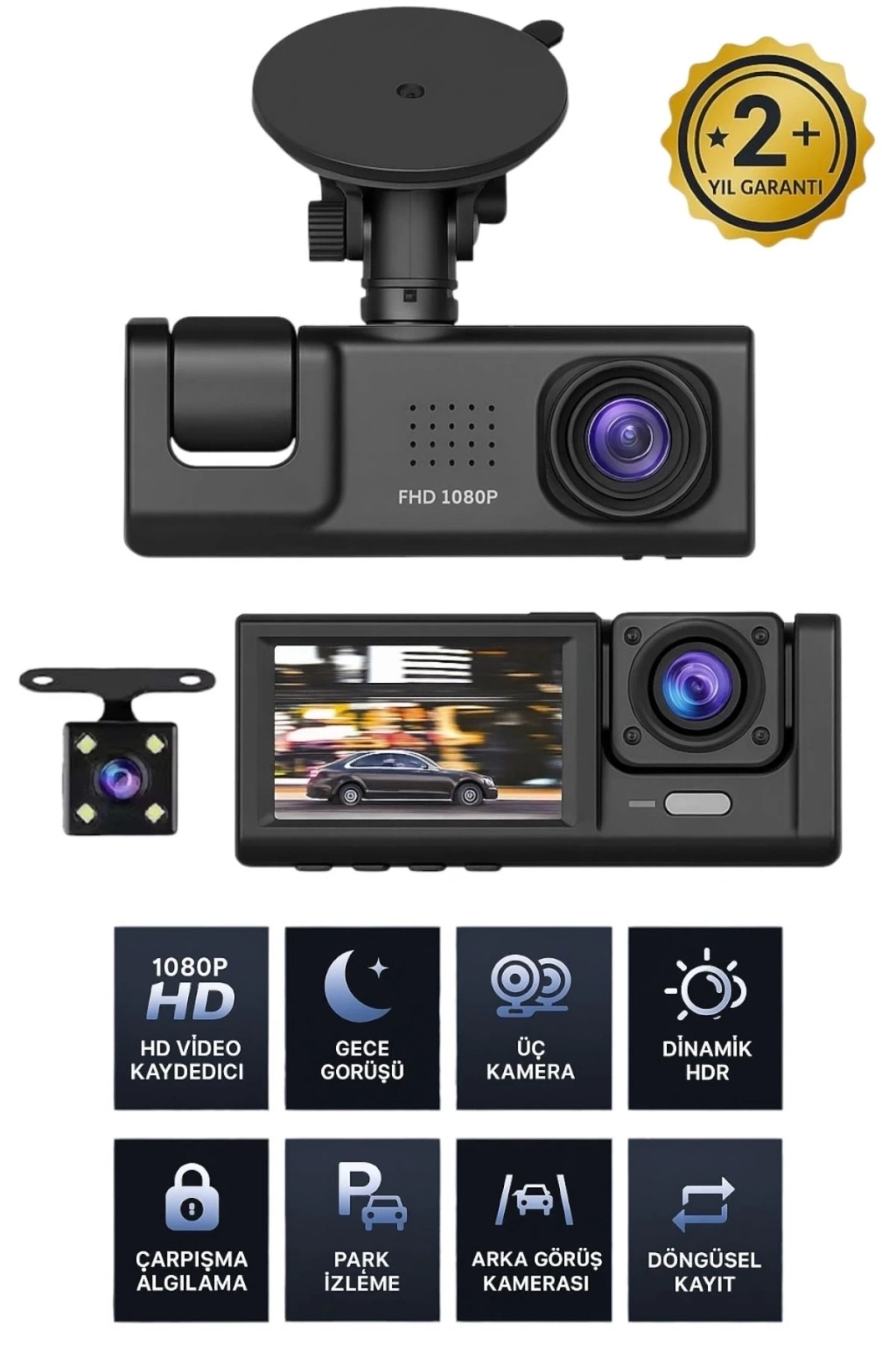 ÇOK SATAN Wifi 1080p Araç içi 3 Kameralı Lcd Ekranlı Gece Görüşlü , G-sensör , Geri Görüş Kamera